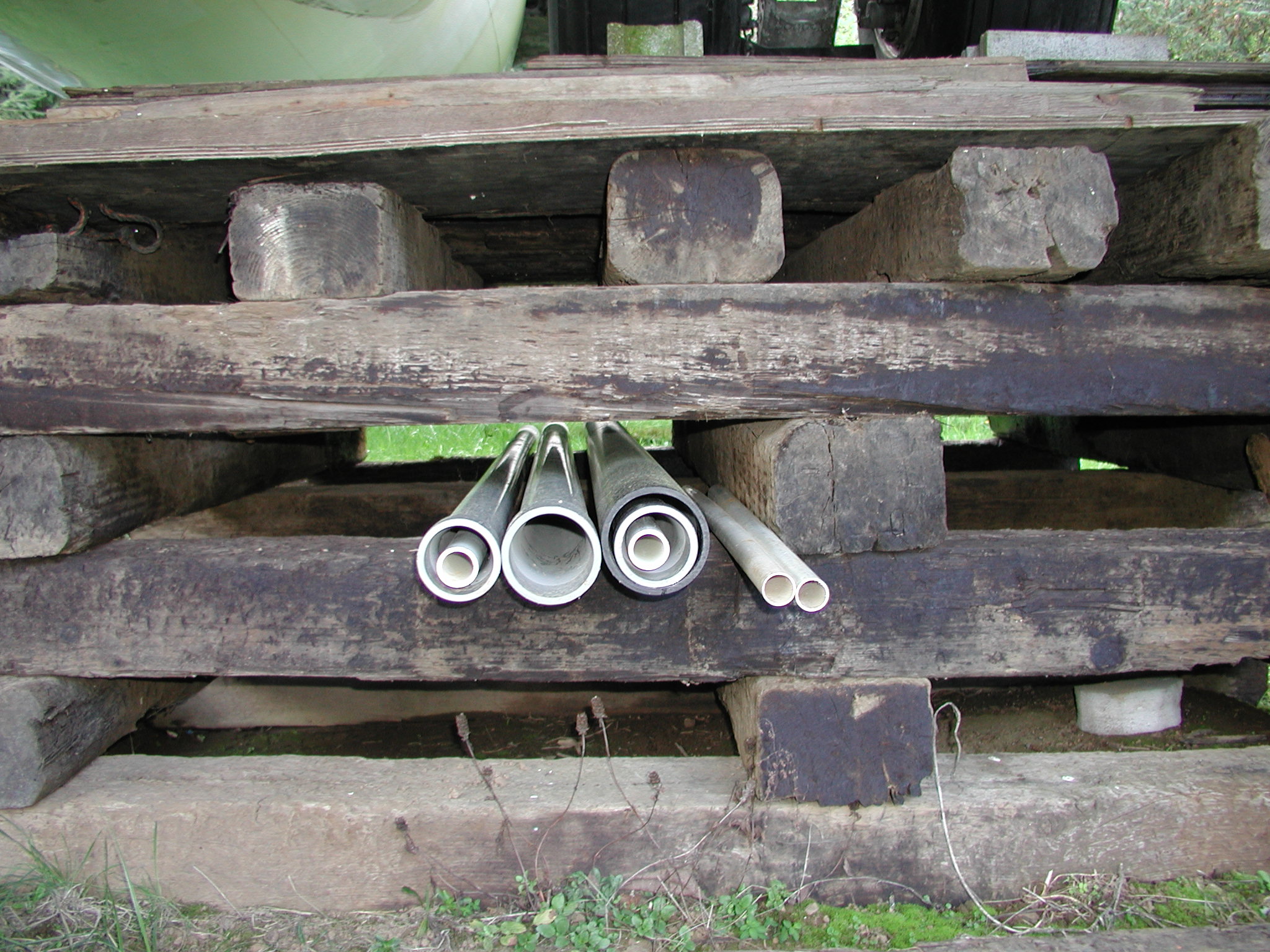 Regarding the water line, I'll tap into the existing pipe with a new line, leaving the old remaining length intact and connected, for later use as an outdoor ground level water service port. The new tap line will route to a ground service box with gate valves, then, below ground level, enter a hole in a vertical stanchion consisting of two gray PVC conduits (one inside the other, and both schedule 80, for strength) which will be set in the post hole. The water line will then route vertically inside the stanchion to it's top, where it will exit through a weather head, connecting to the water service port through a flexible line so the aircraft can bob up and down on it's struts without damaging the line. The standard Boeing water connector will be used, so no modification of the aircraft's hardware will be involved. The water line will be insulated from the base of the stanchion up to and then over the Boeing connector with the usual polymer foam.