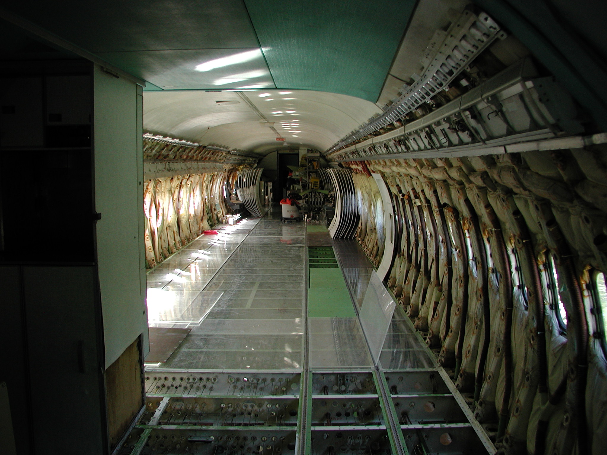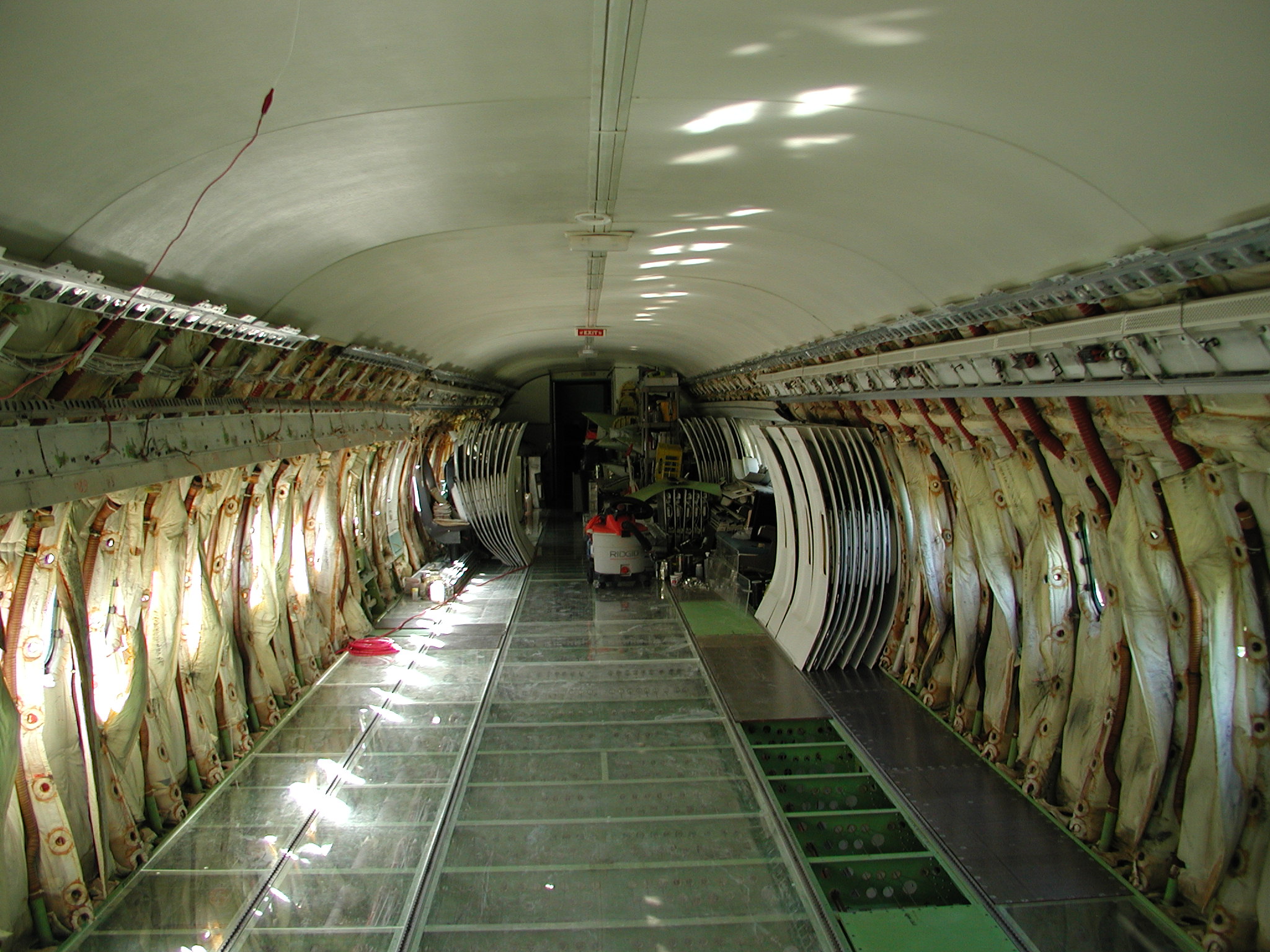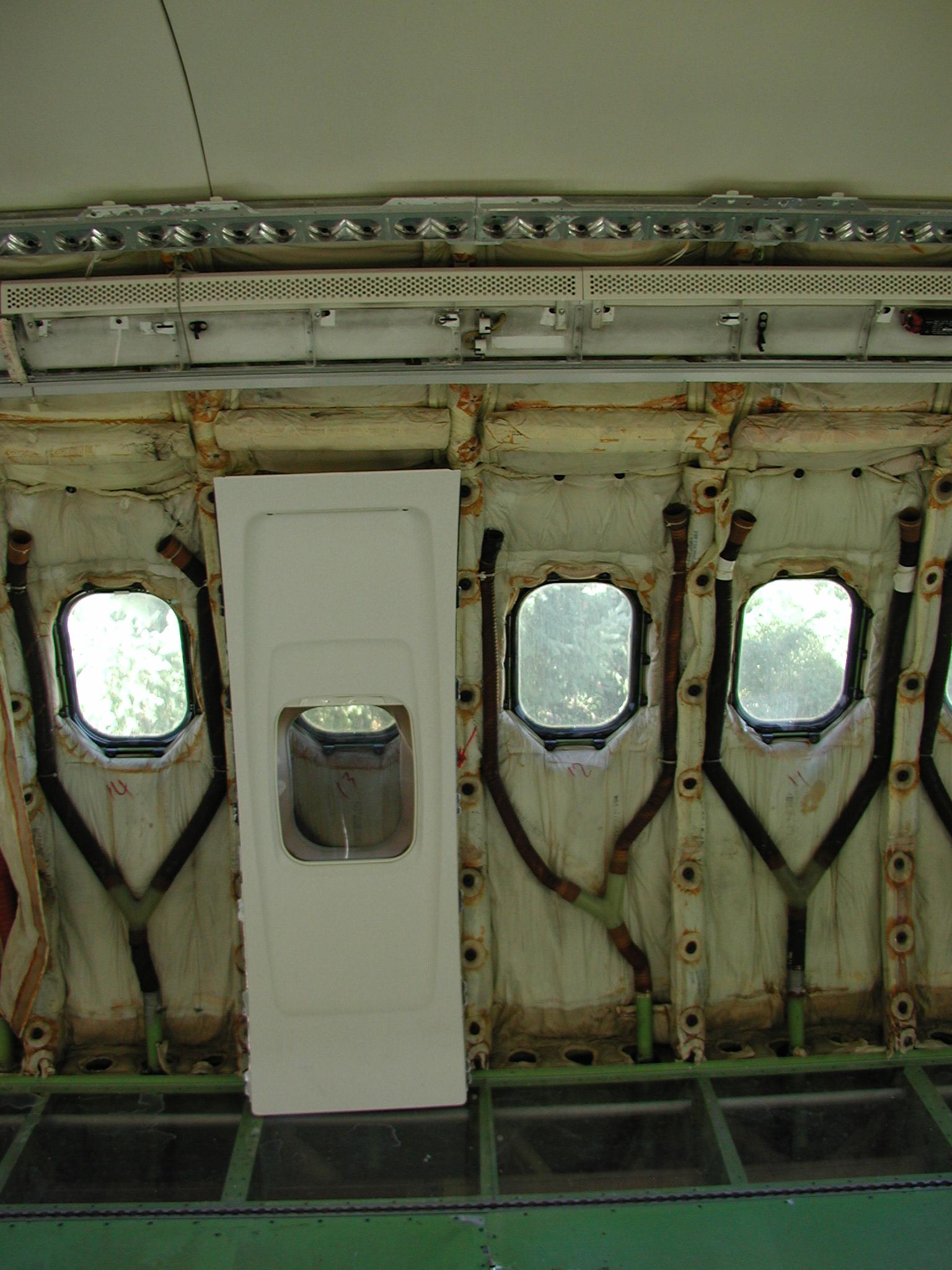 I've also been busting butt to clean the entire electronics bay and the front landing gear interior belly area. The belly area in the electronics bay was the home a large quantity of belly glop, which is now thoroughly gone, along with it's odor. I had to remove all the floor panels and insulation to get to it. Most of this cleaning is now complete (but not all). For this aircraft, it's been necessary to remove the lower insulation blankets (those from the floor line down) in some areas, including the entire electronics bay, in order to get the areas clean. (This might prove true for other retired airliners too.) In the electronics bay, most of the insulation blankets were in quite bad shape, providing little real insulation, they were filthy dirty, and they made genuine cleaning of the area impossible. So I removed them, and discarded the unserviceable and unrepairable ones, of which there were quite a few. I may have to reinsulate the area later (or perhaps not, but that's a complicated story), but what's important now is that the area is squeaky clean - you can move around and work in the area without soiling your hands or clothes, and there's no odor - it's quite nice.