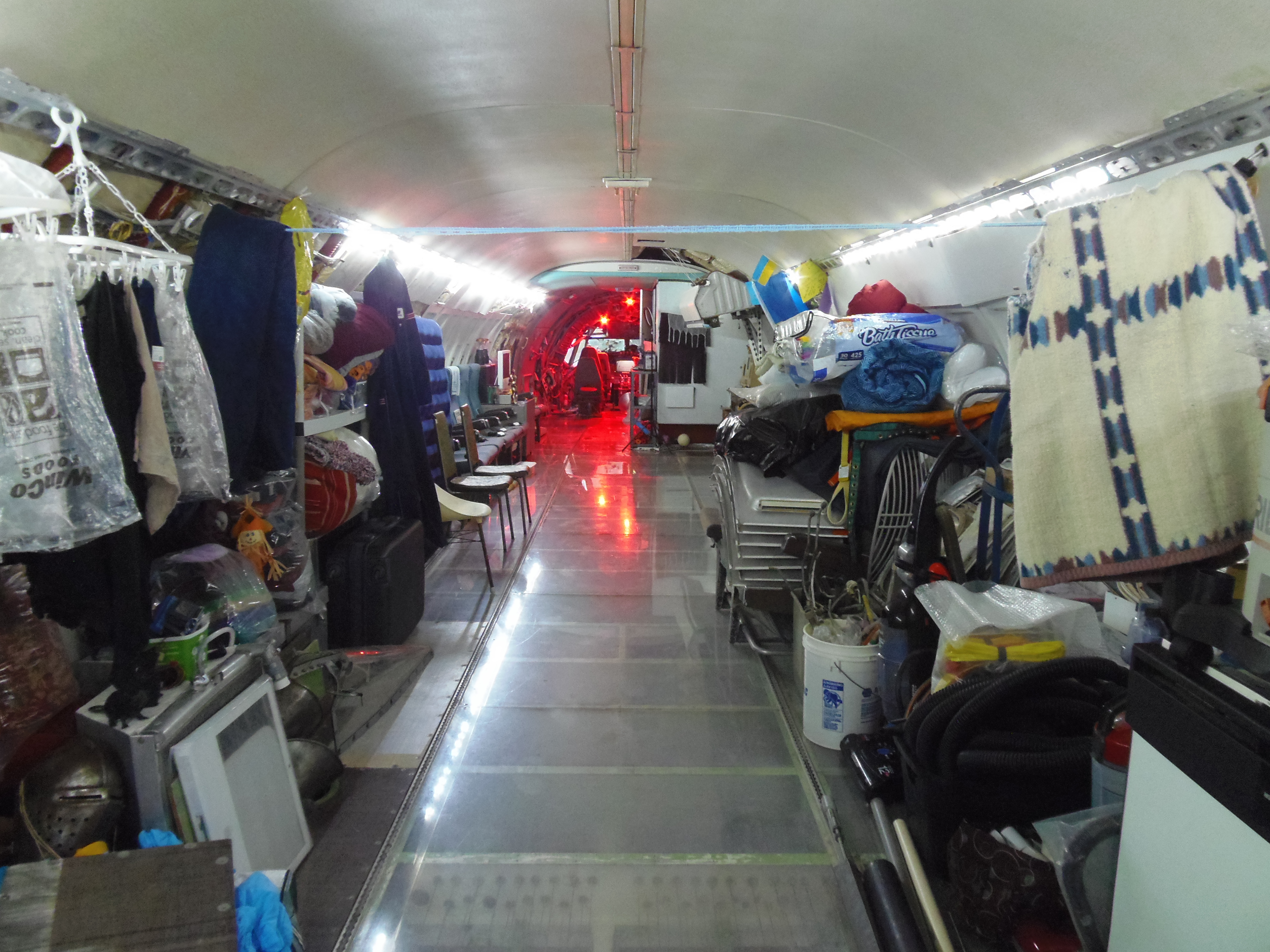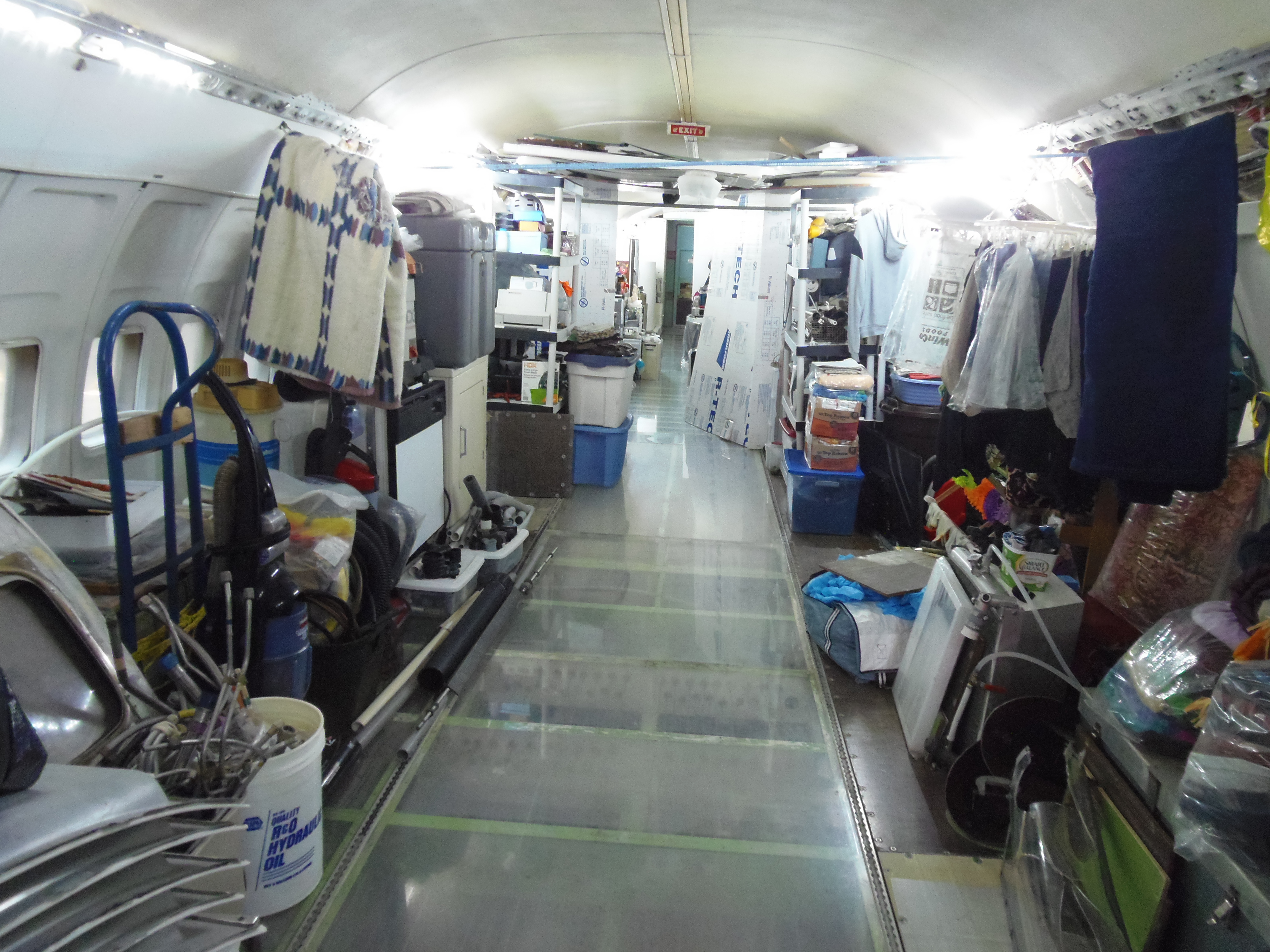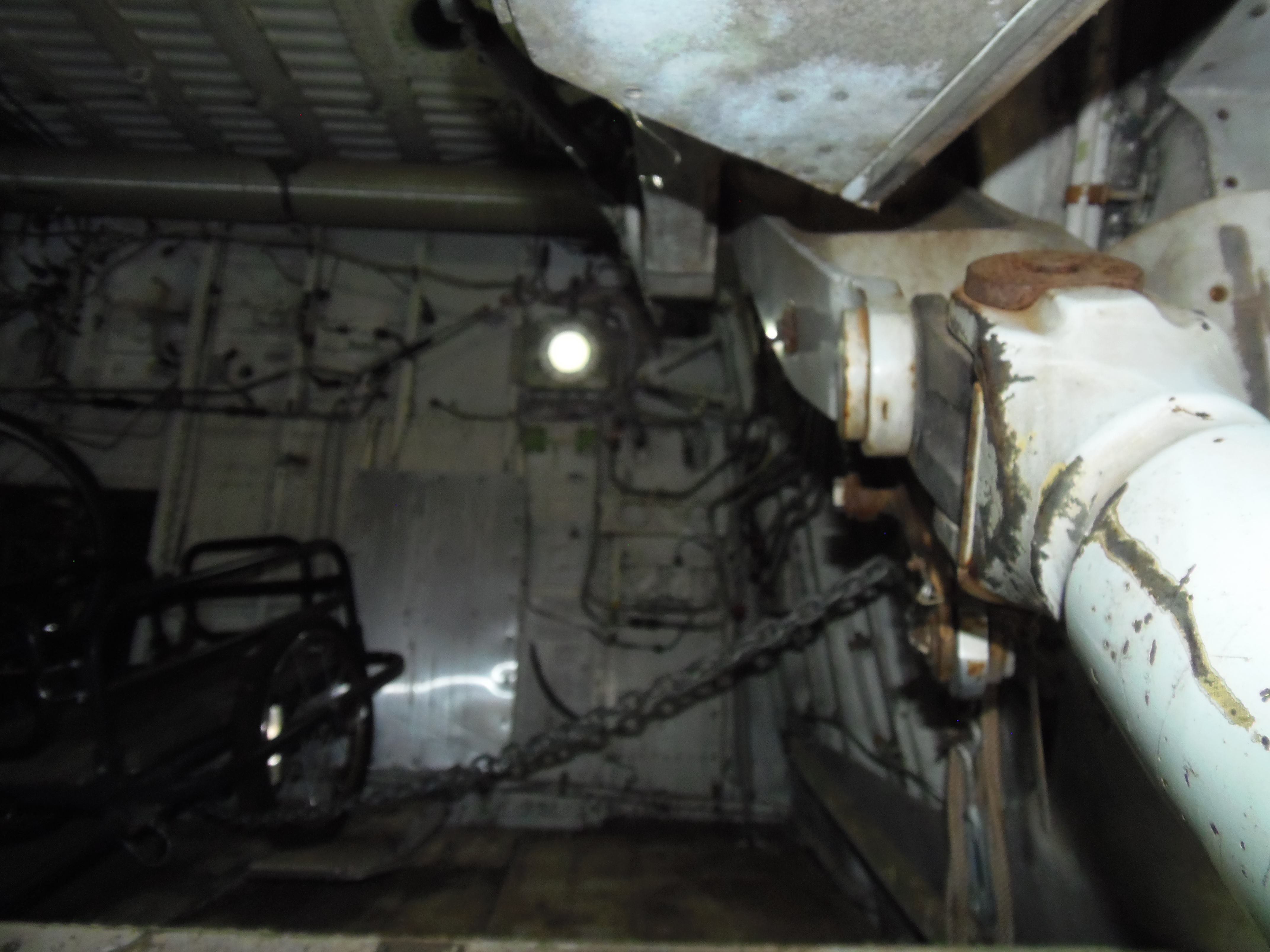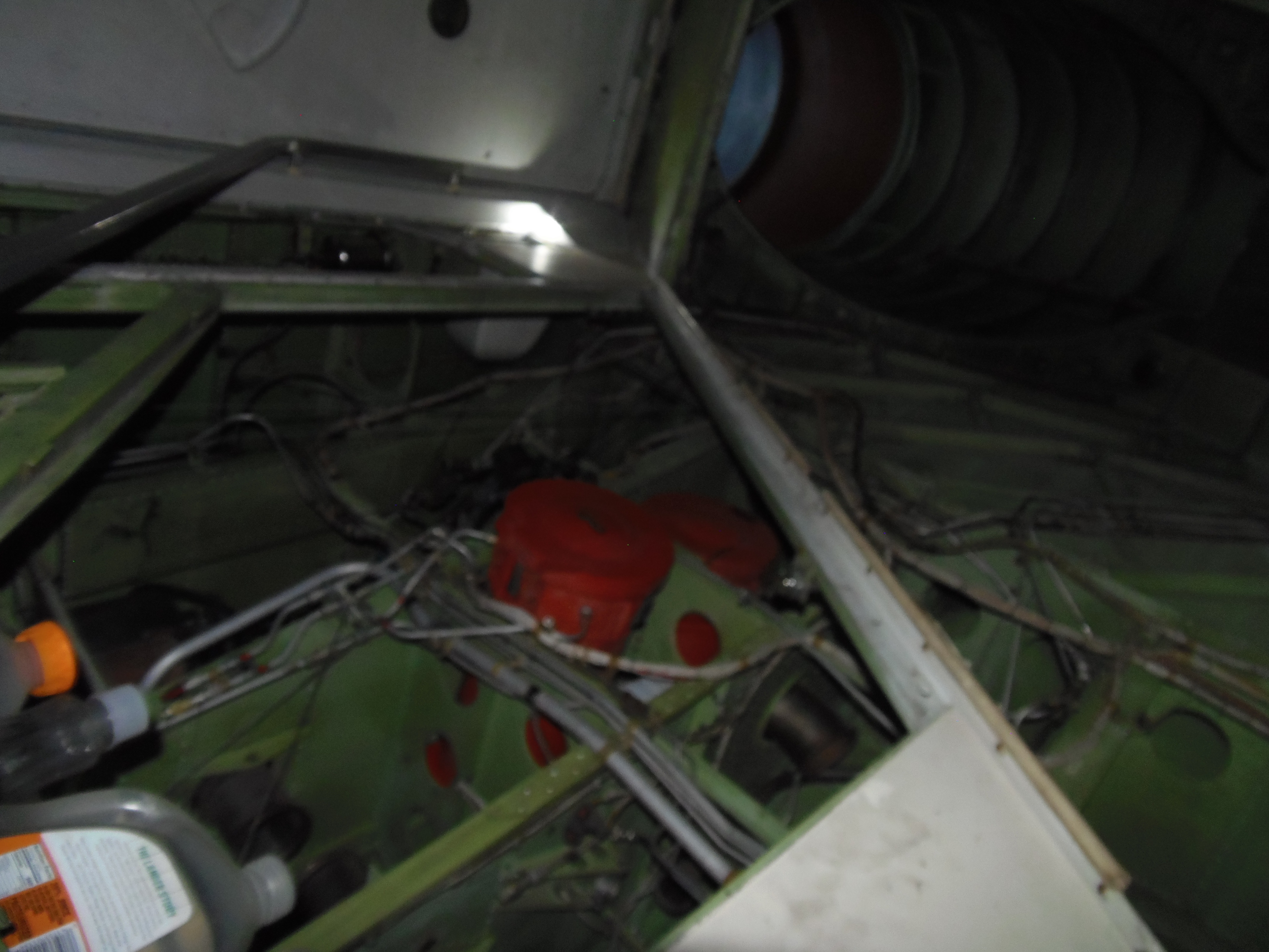 As you can see in the images crude wood, foam panel, and aluminum floor panel stacks which supported the left side and tail area of my fuselage belly during the rebuild of my left landing gear support structure remain in place, awaiting fabrication of a permanent left landing gear support structure. They're ugly and visually obstructive but must remain until the permanent landing gear support structure work is complete. I don't know when that might be...