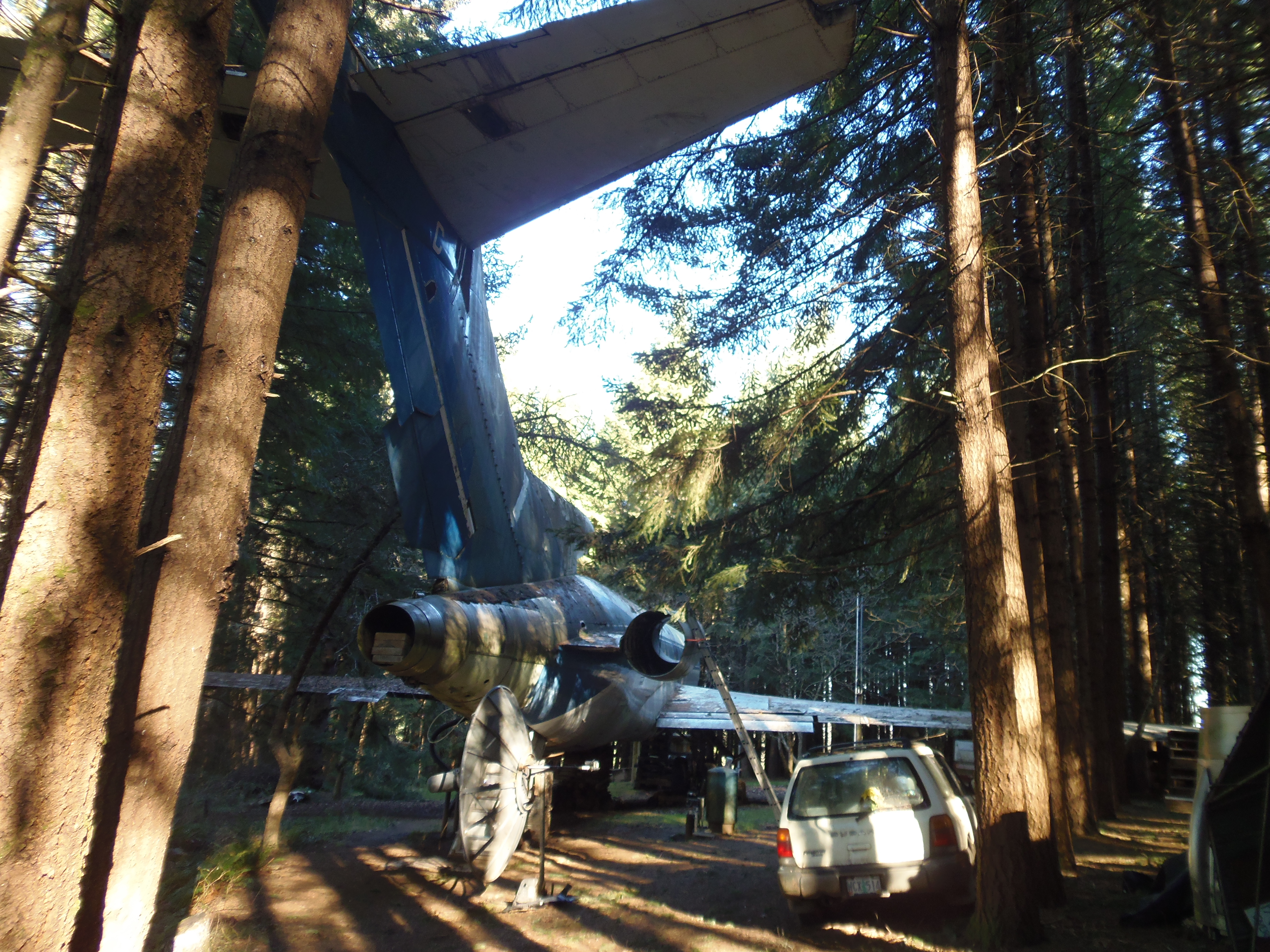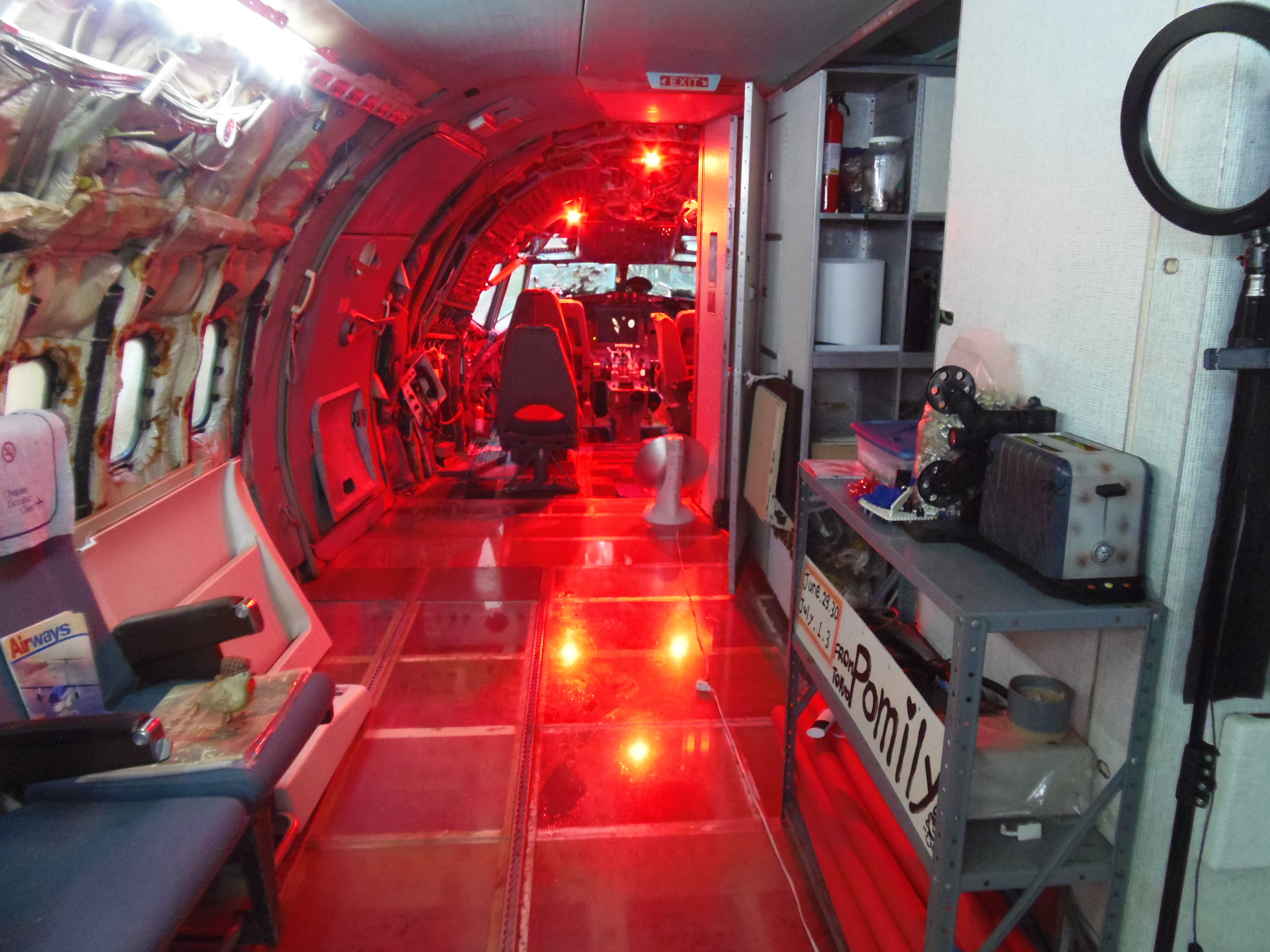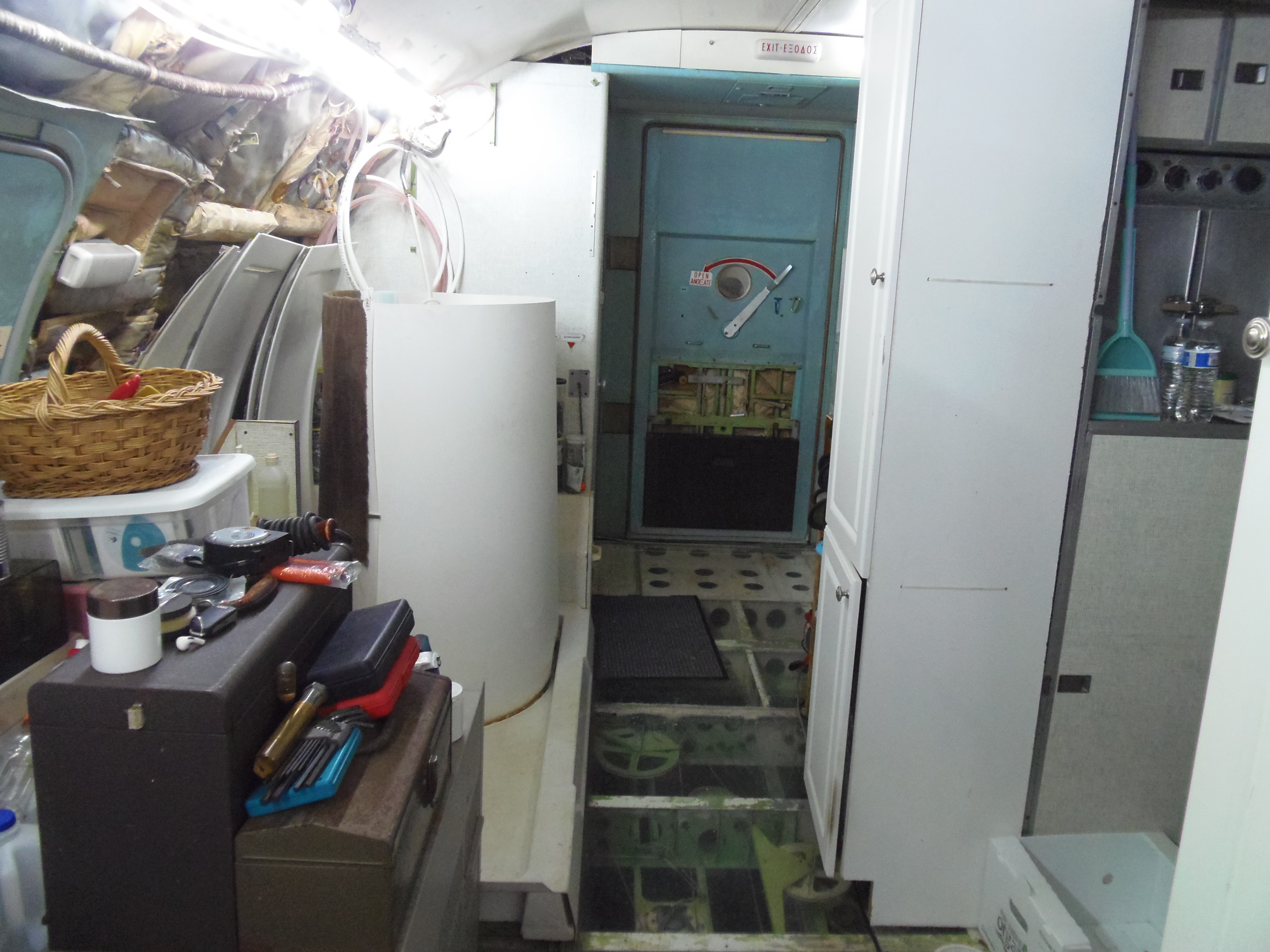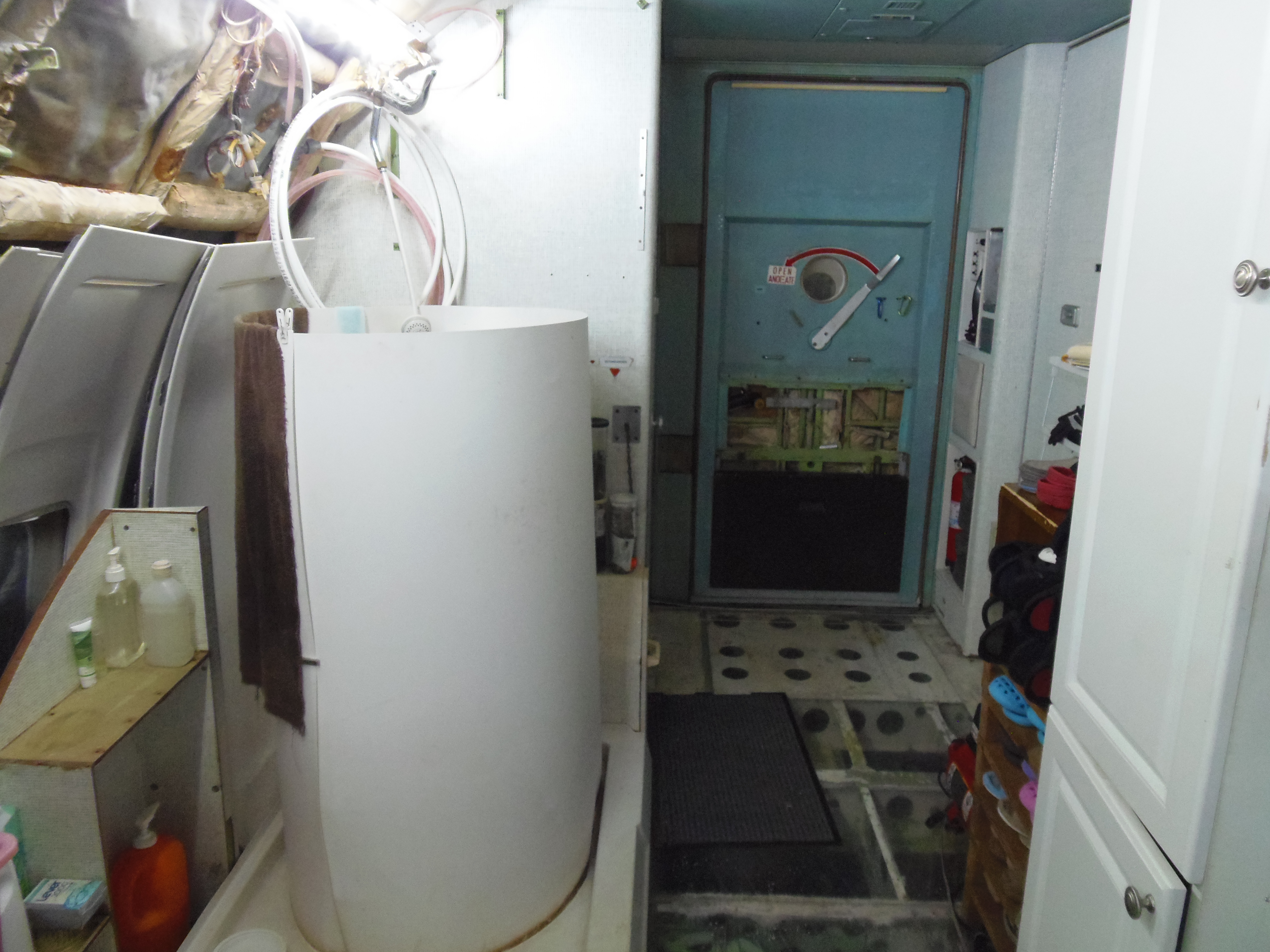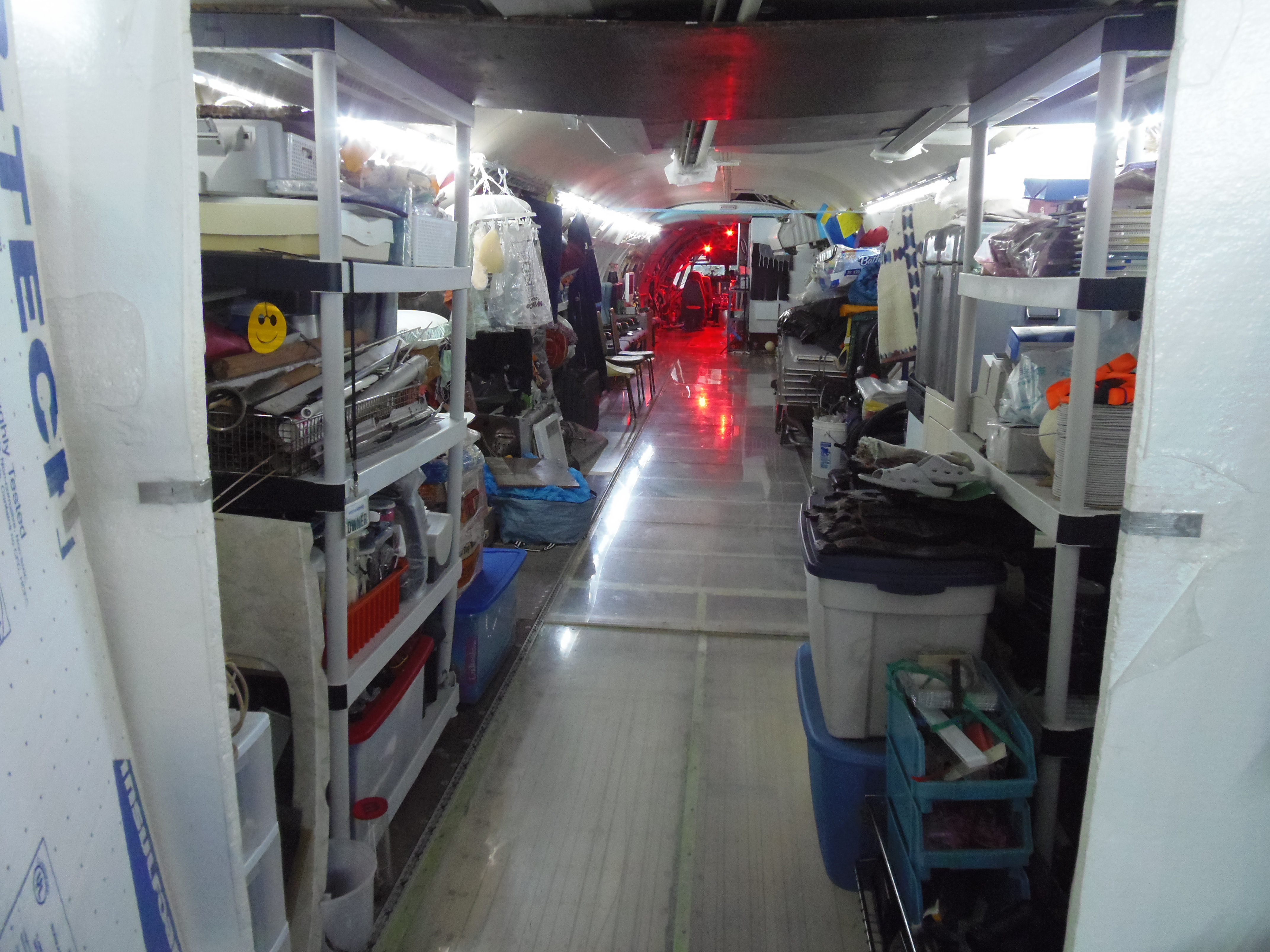 As you can see in the images crude wood, foam panel, and aluminum floor panel stacks which supported the left side and tail area of my fuselage belly during the rebuild of my left landing gear support structure remain in place, awaiting fabrication of a permanent left landing gear support structure. They're ugly and visually obstructive but must remain until the permanent landing gear support structure work is complete. I don't know when that might be...