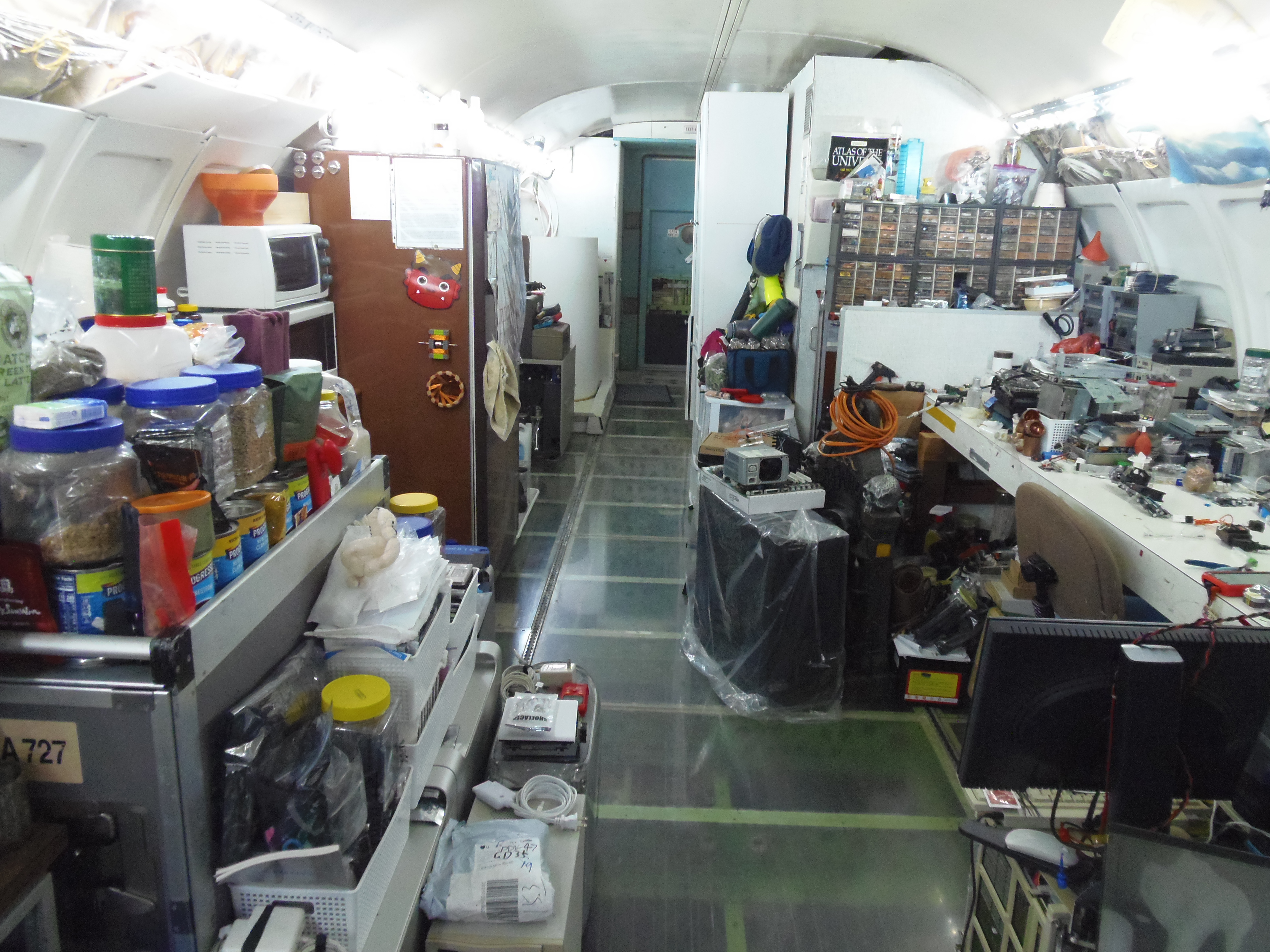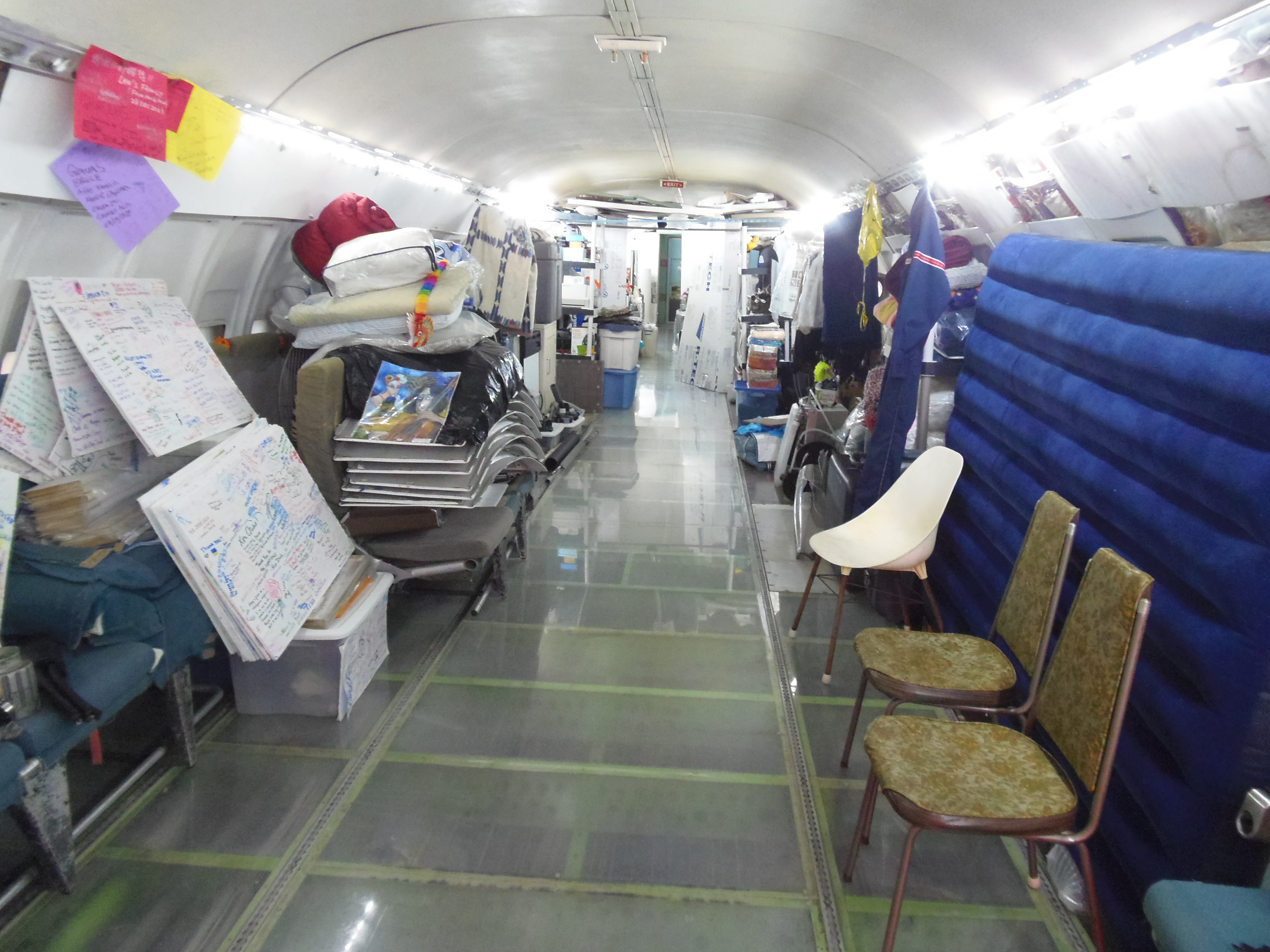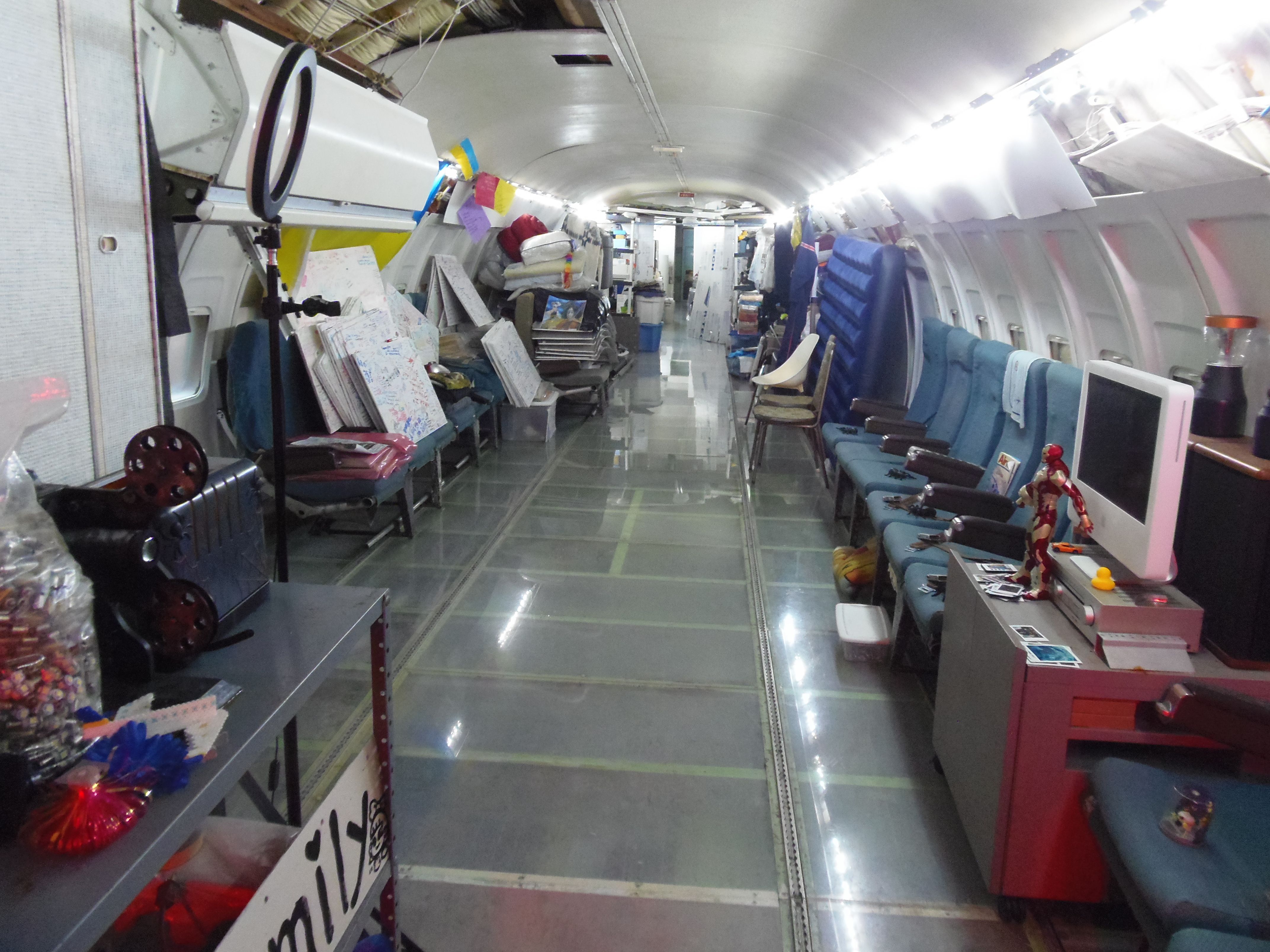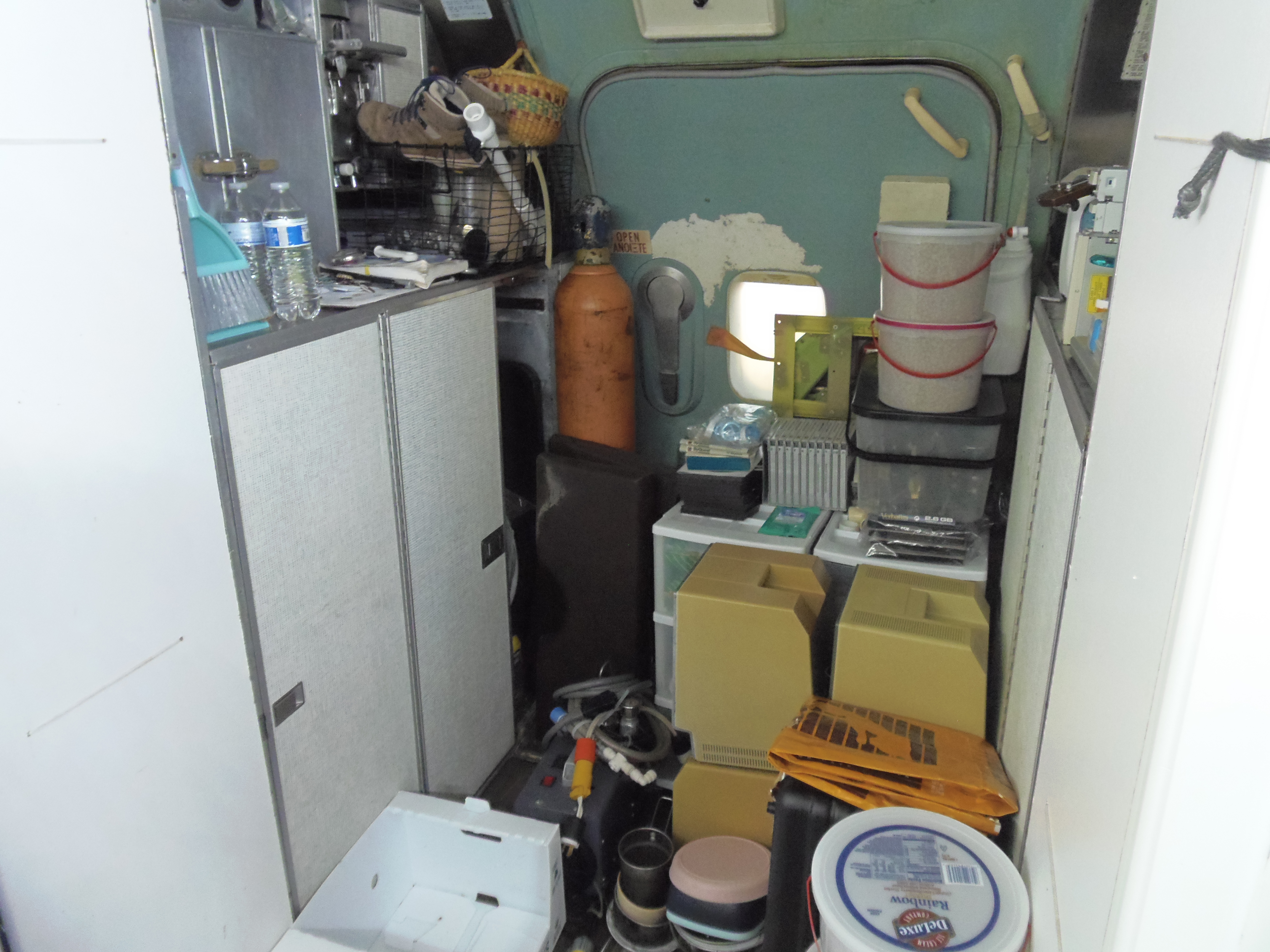 As you can see in the images crude wood, foam panel, and aluminum floor panel stacks which supported the left side and tail area of my fuselage belly during the rebuild of my left landing gear support structure remain in place, awaiting fabrication of a permanent left landing gear support structure. They're ugly and visually obstructive but must remain until the permanent landing gear support structure work is complete. I don't know when that might be...