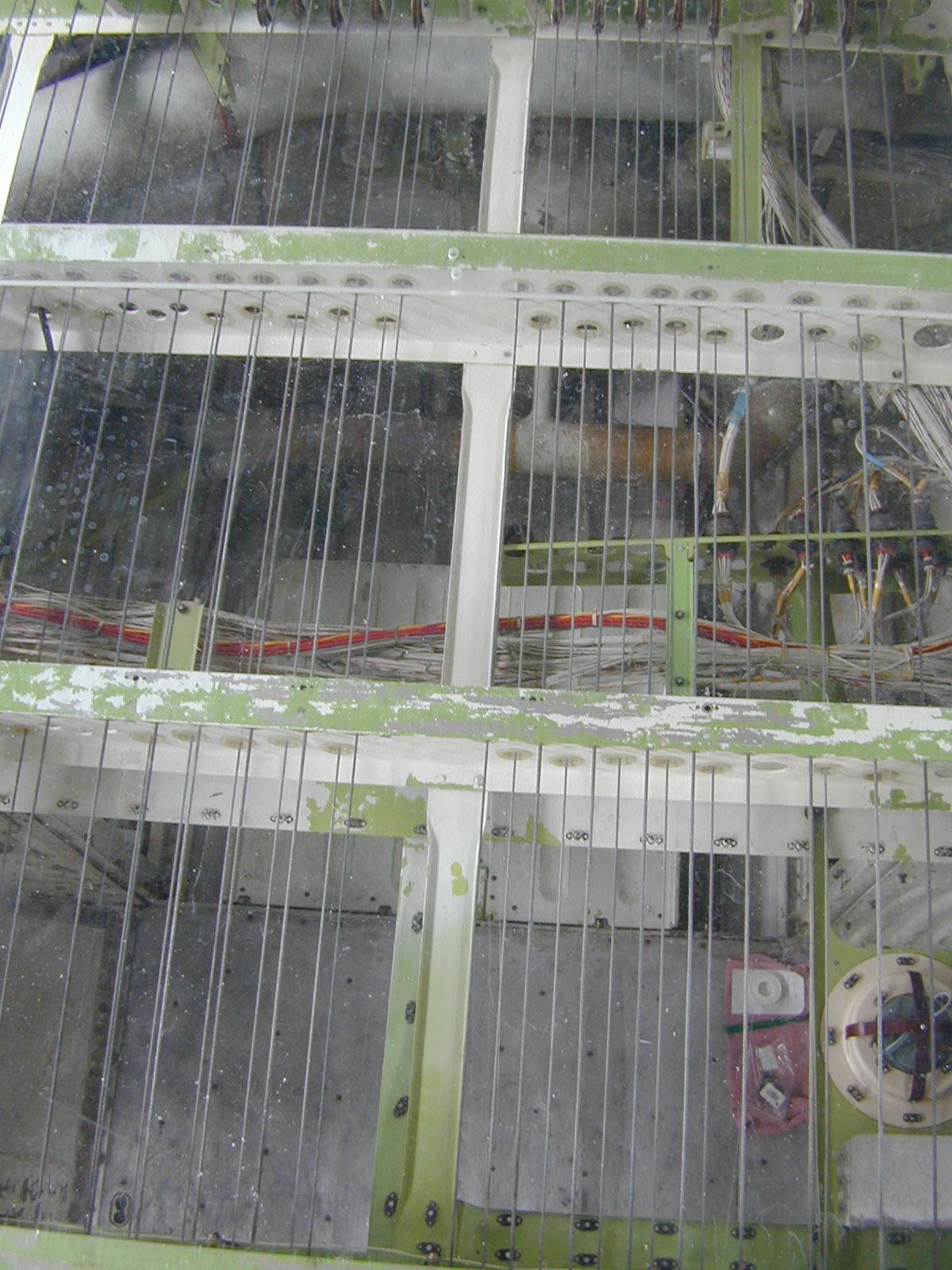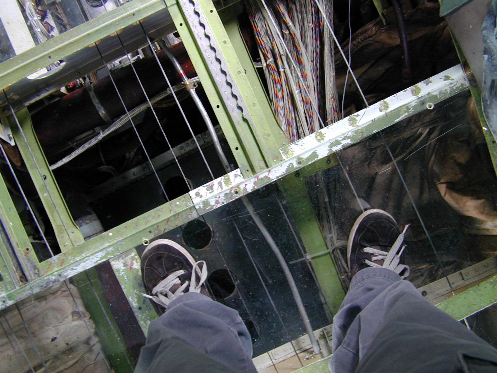 Click on a thumbnail for a full size version, whose file size varies from 232 KB to 432 KB. The quality of the images below is quite good, and the composition of some is unique. Unfortunately though, I didn't have time to mop the clear acrylic floor beforehand. I did accomplish a lot of other site cleanups, and a just bit of exterior pressure washing. But I didn't pressure wash the north side of the aircraft, which really needs it due to pollen, moss, and grit buildup, as you can see in the first image.