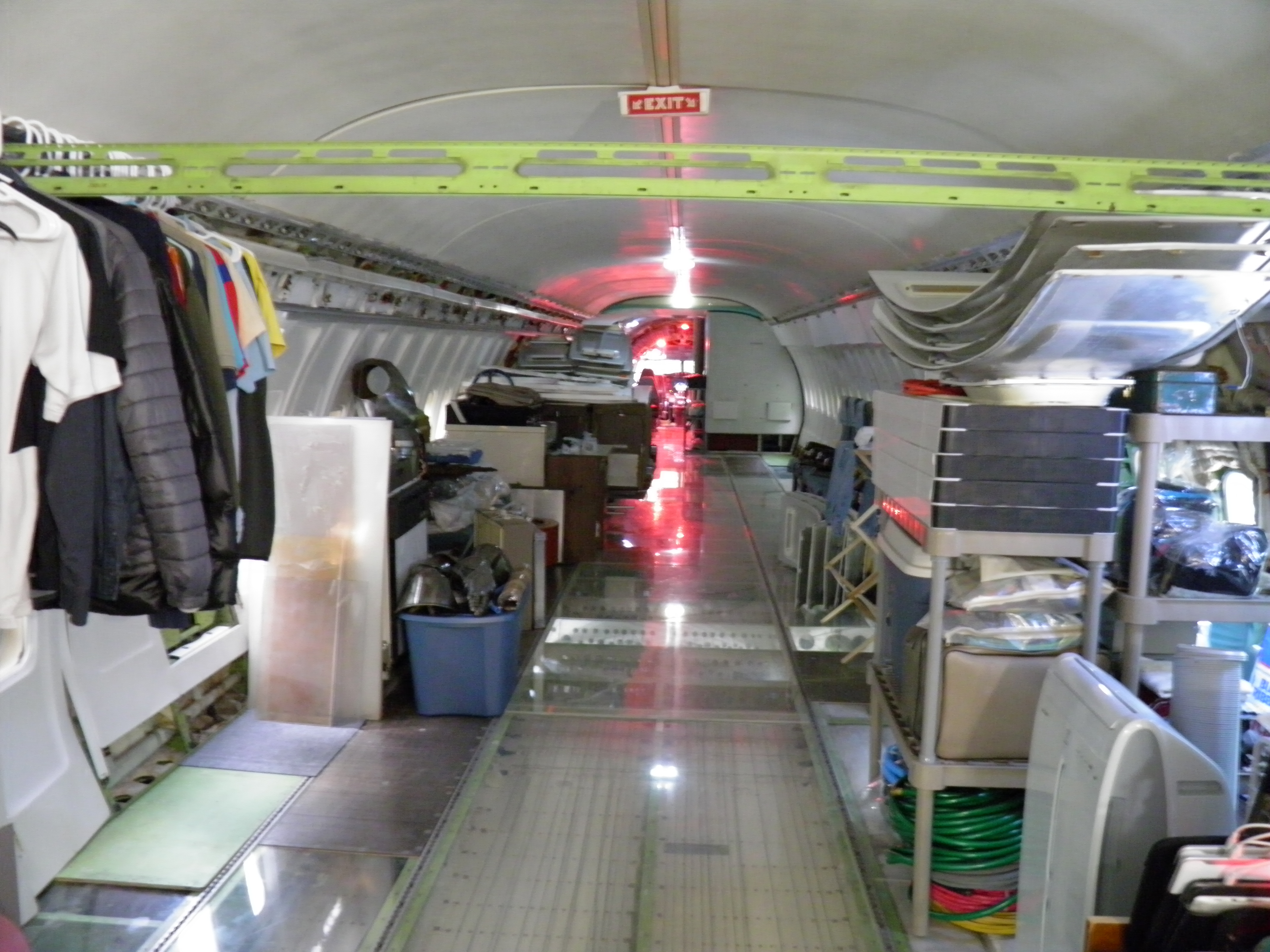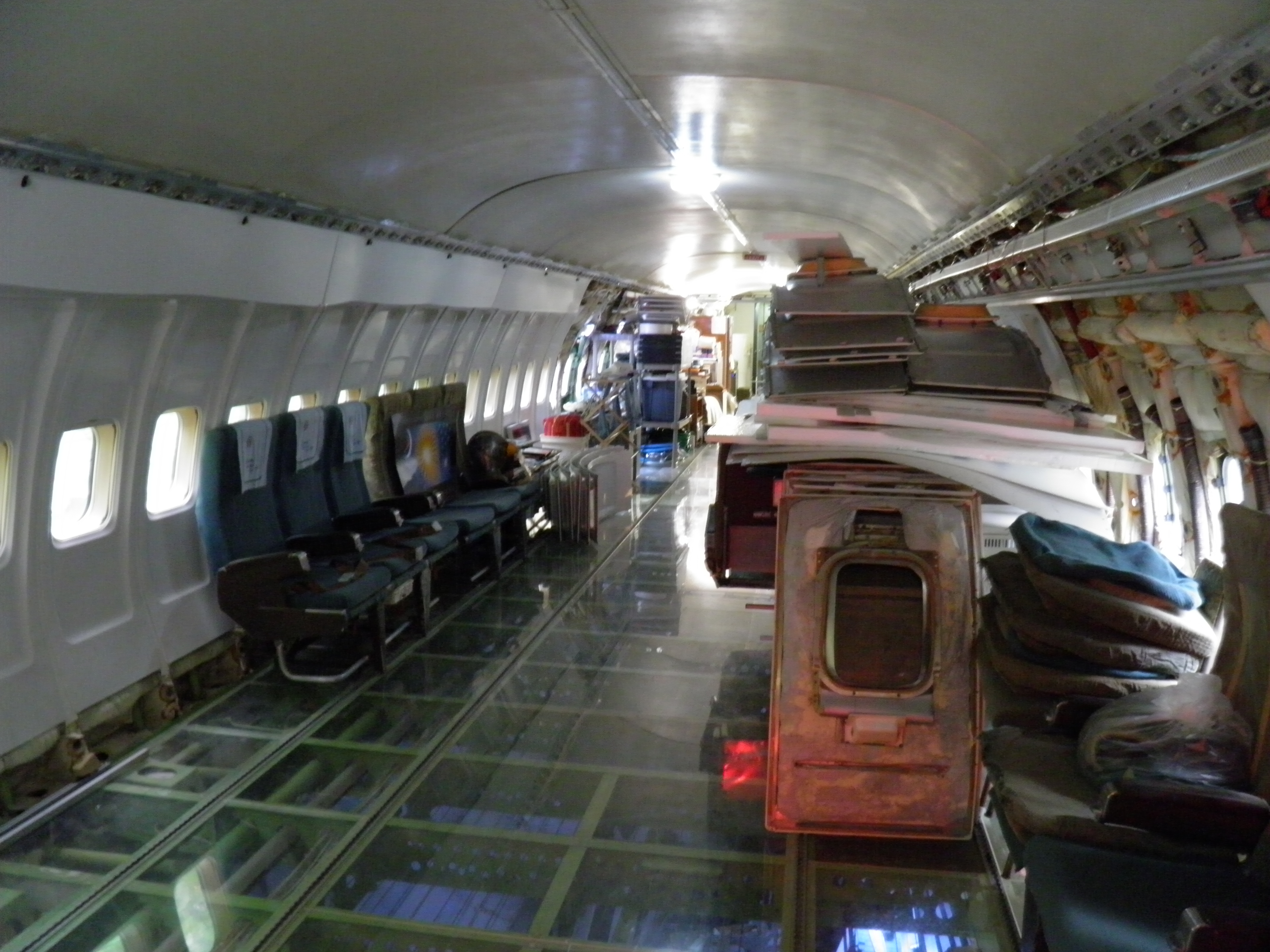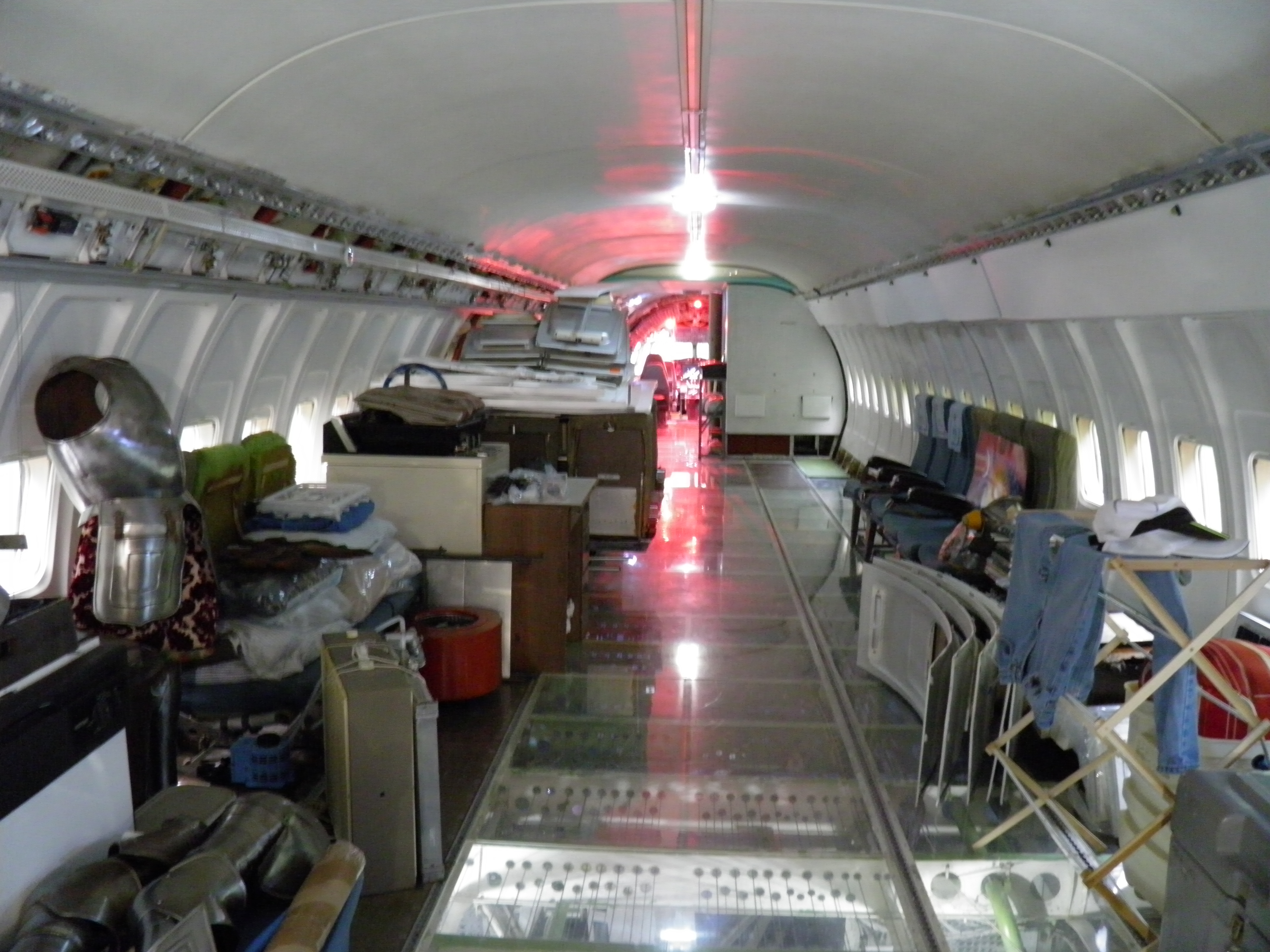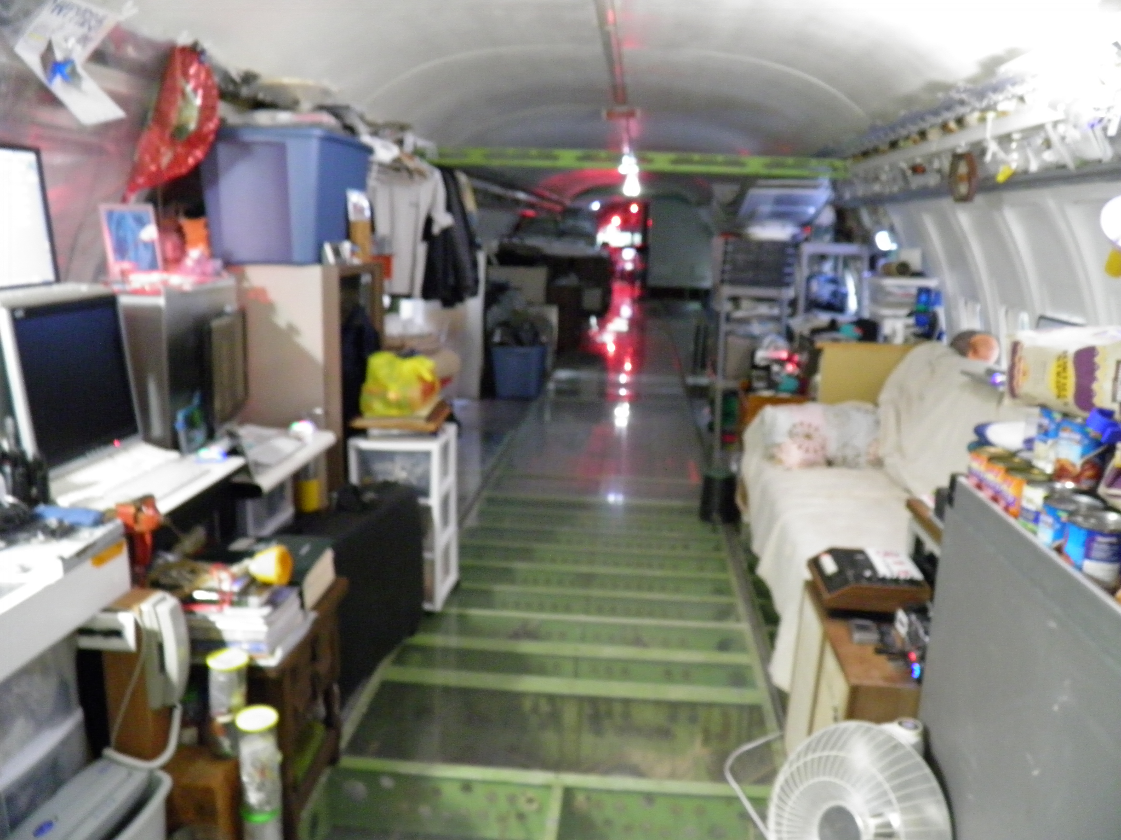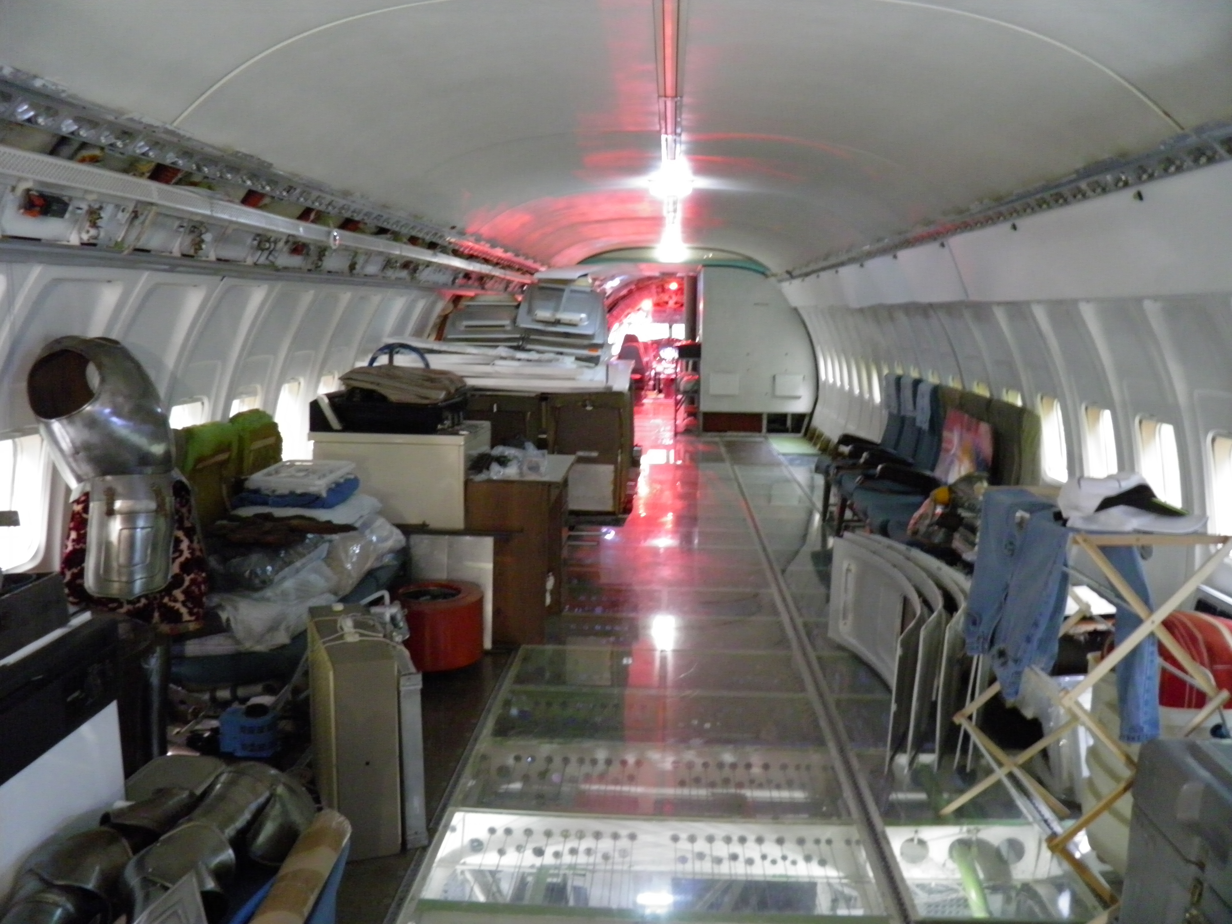 Numerous additional cabin window panels have been mounted, and some of the original cabin florescent light fixtures have been removed, and methods to cover their portion of the bare area underneath are being explored as you can see in a few of the images.  The same conversion will be performed for the rest of the cabin later.