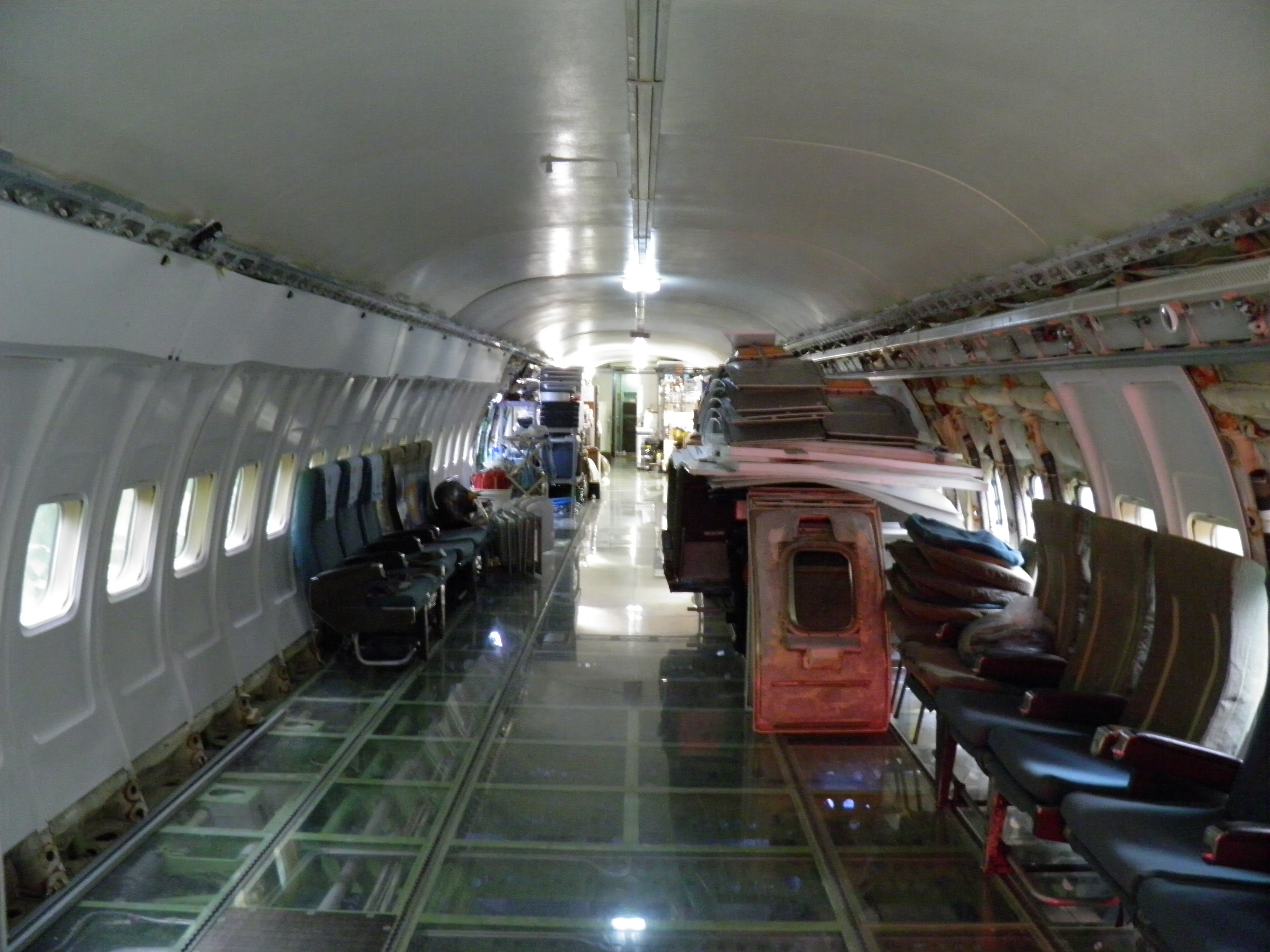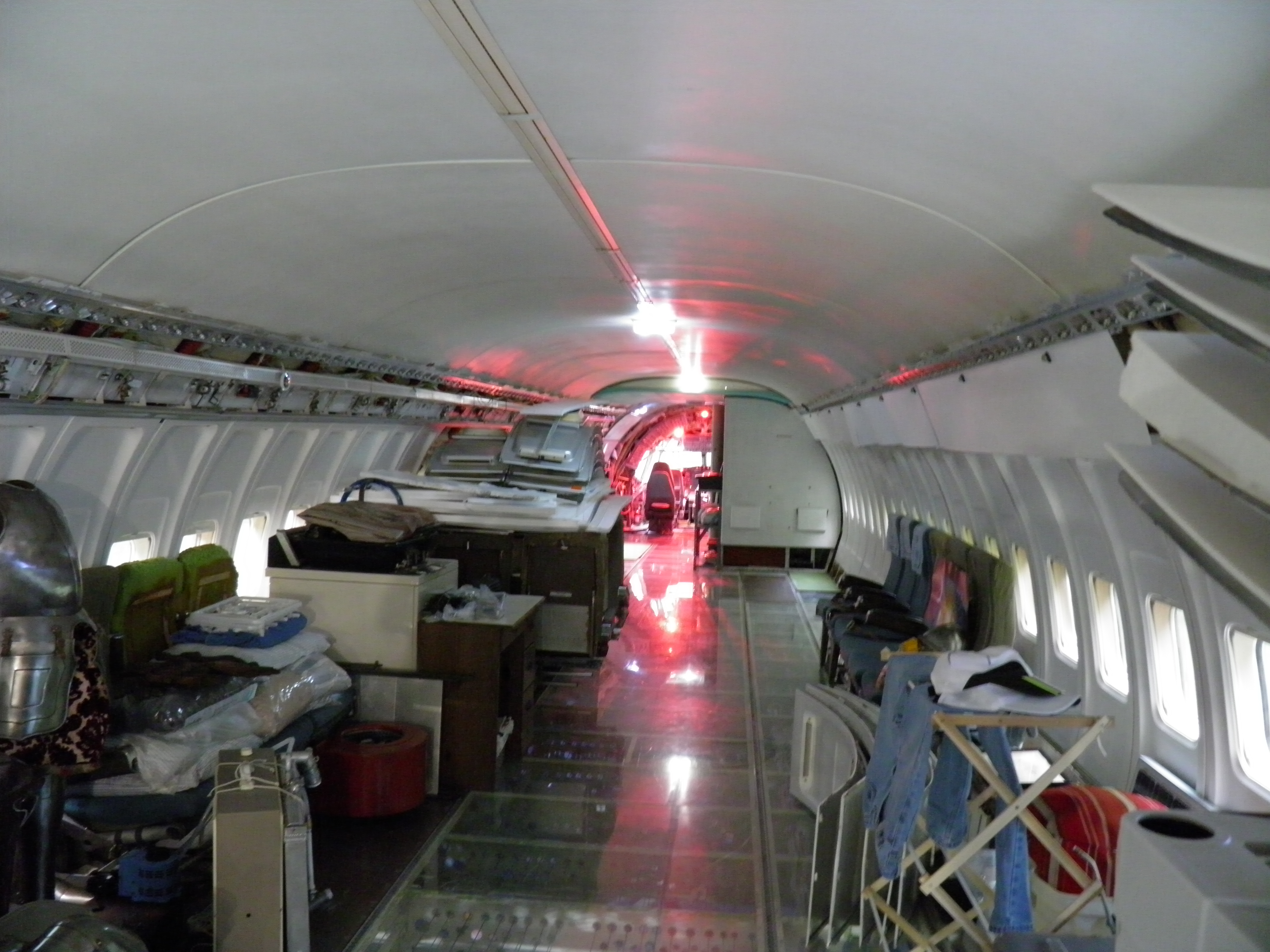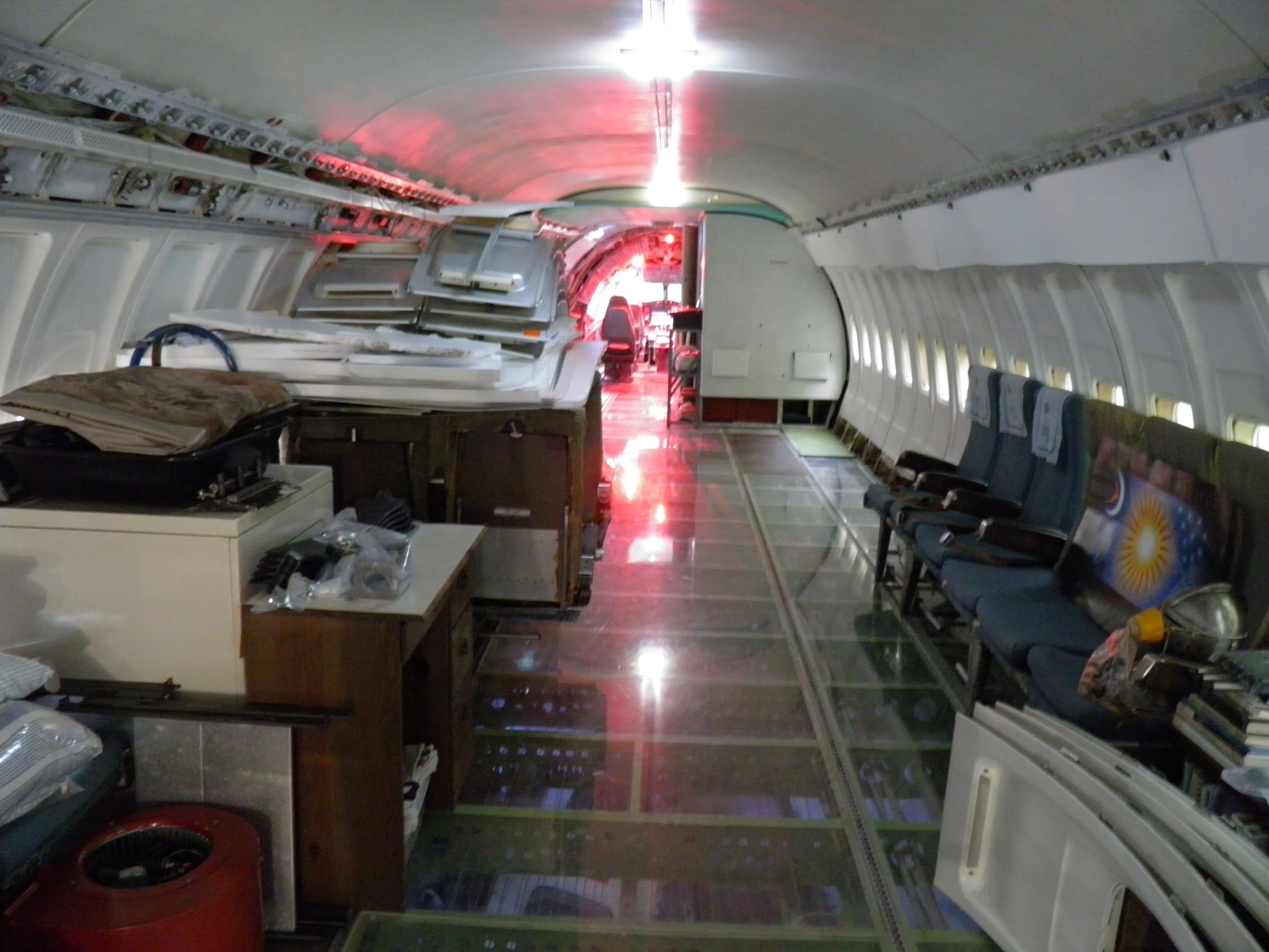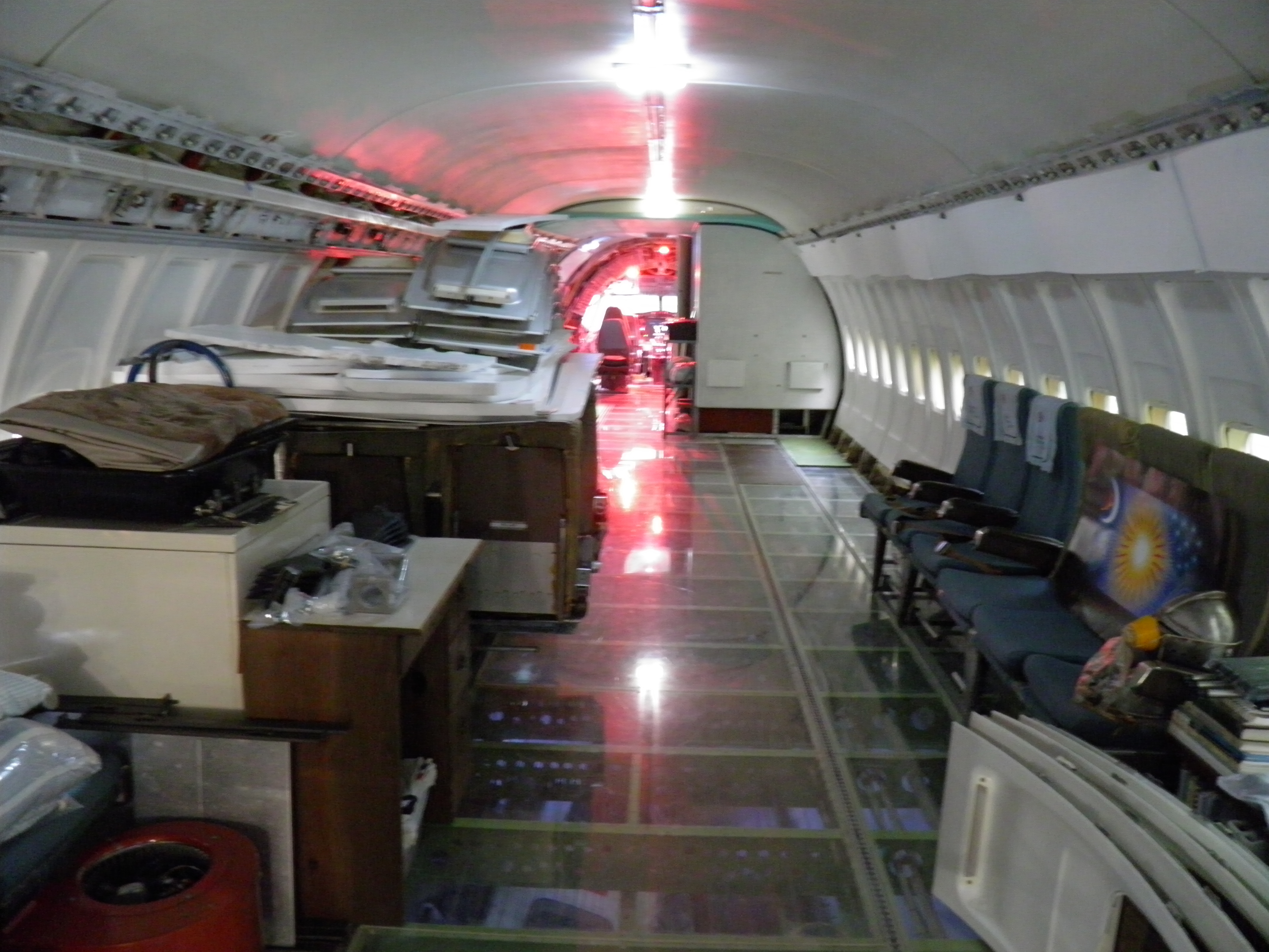 Numerous additional cabin window panels have been mounted, and some of the original cabin florescent light fixtures have been removed, and methods to cover their portion of the bare area underneath are being explored as you can see in a few of the images.  The same conversion will be performed for the rest of the cabin later.