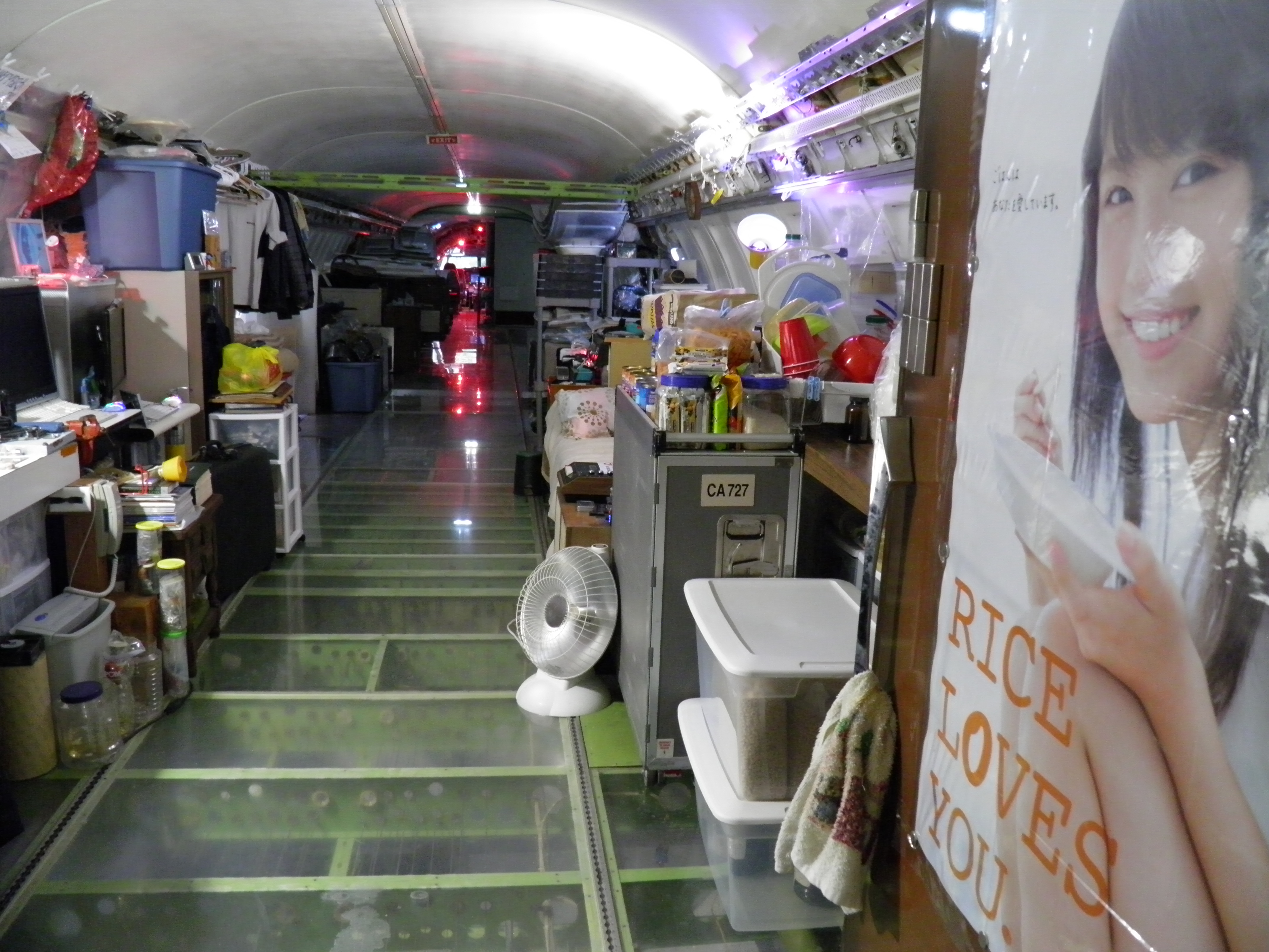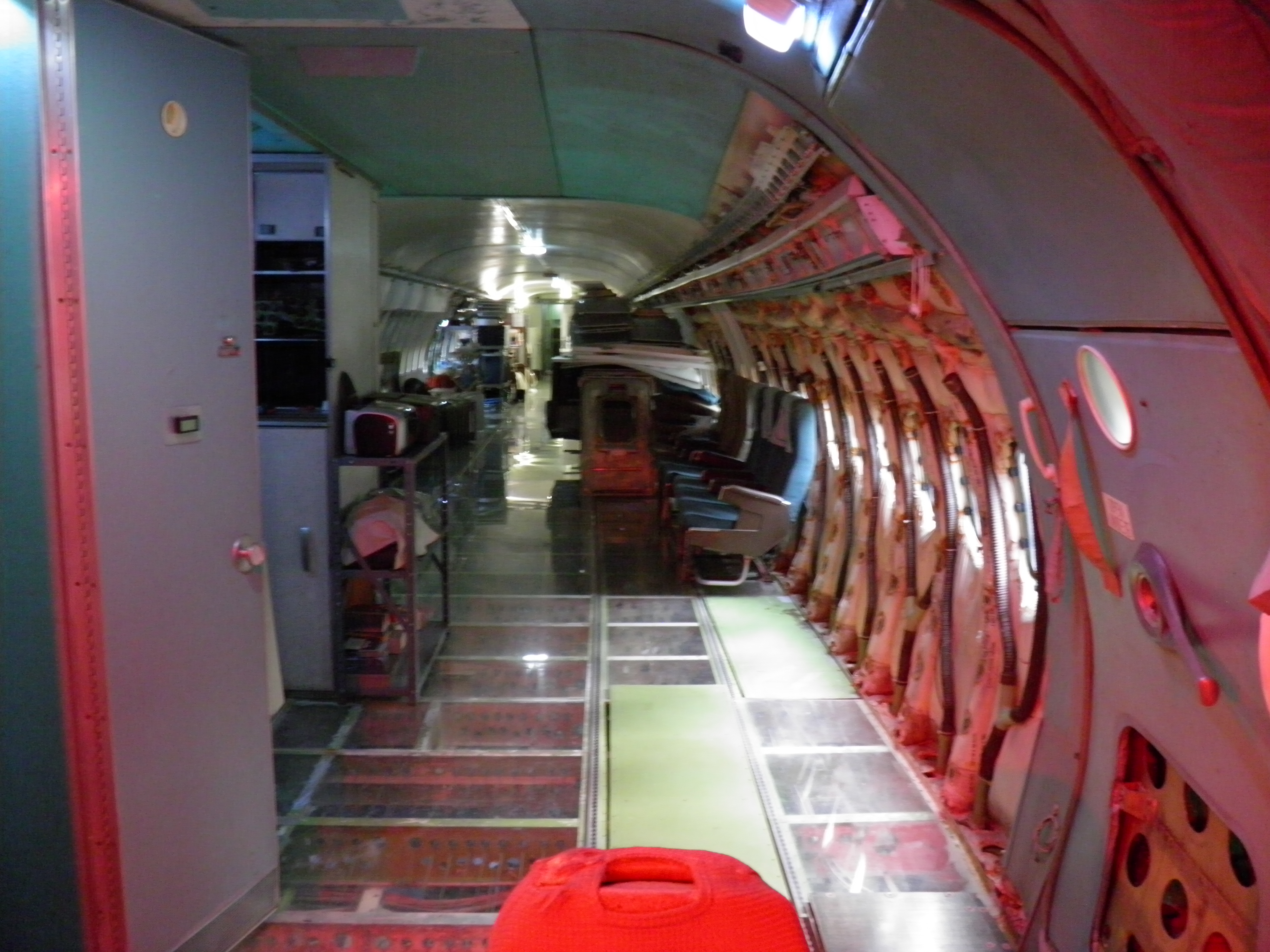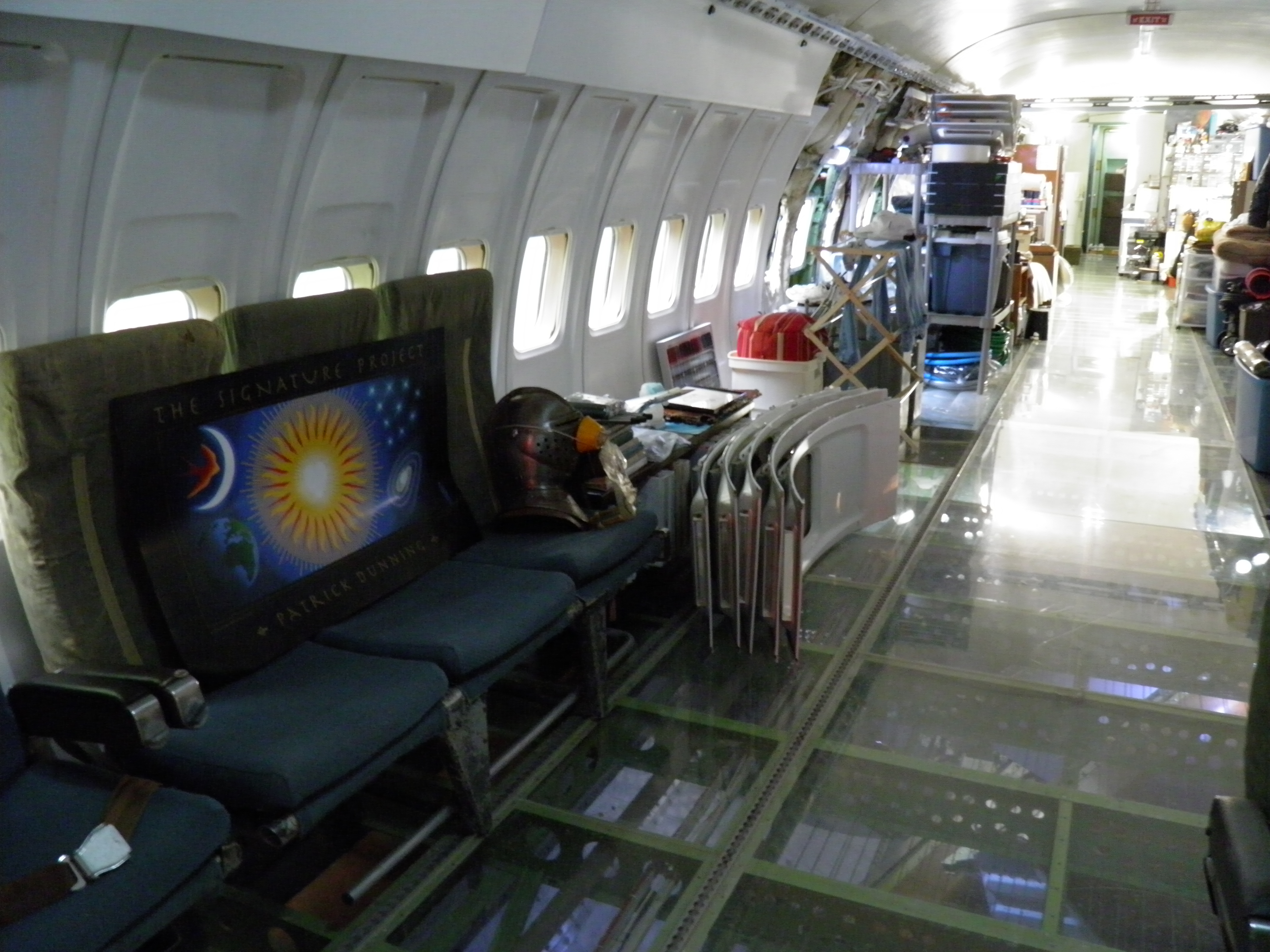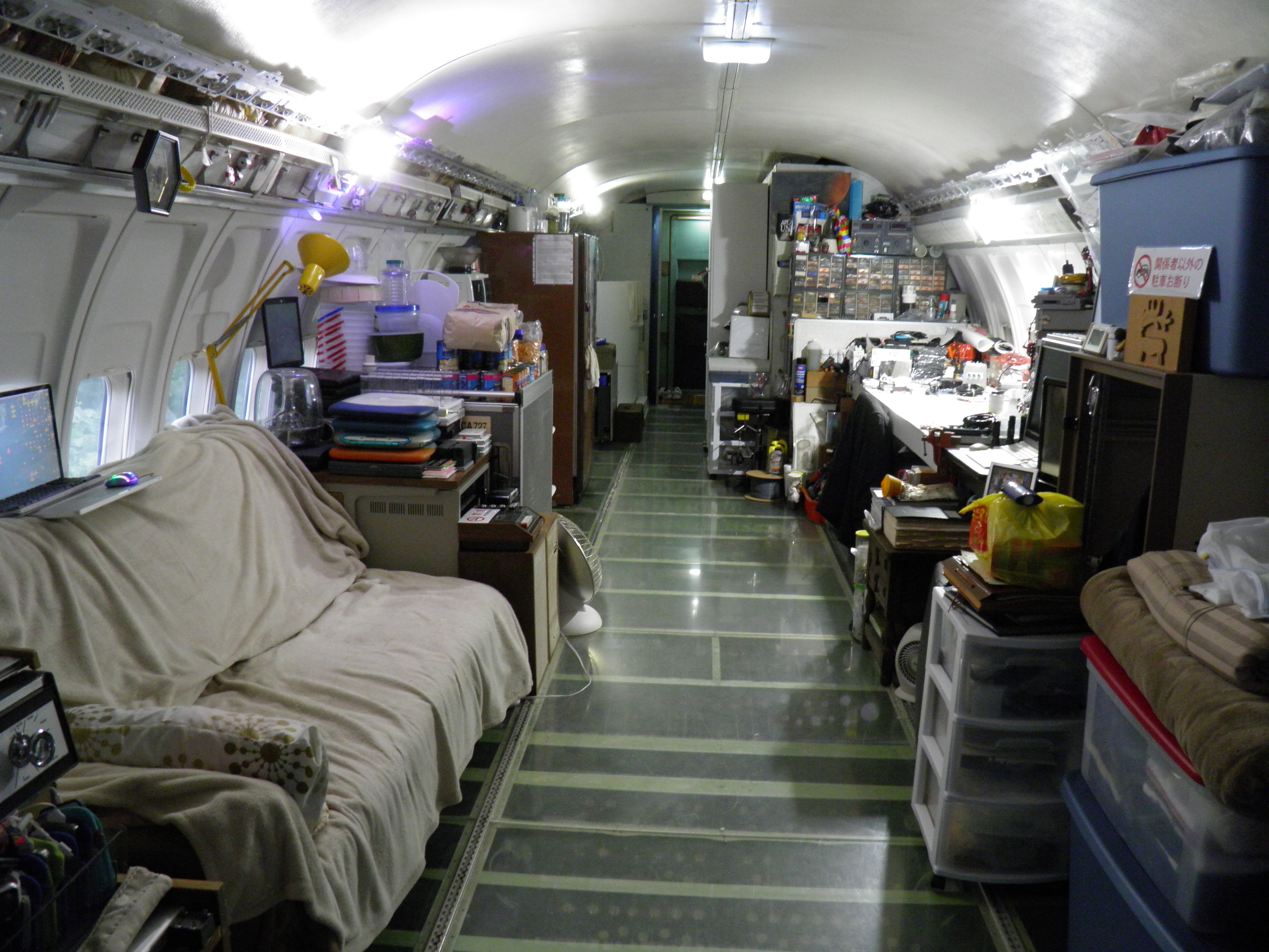 Numerous additional cabin window panels have been mounted, and some of the original cabin florescent light fixtures have been removed, and methods to cover their portion of the bare area underneath are being explored as you can see in a few of the images.  The same conversion will be performed for the rest of the cabin later.