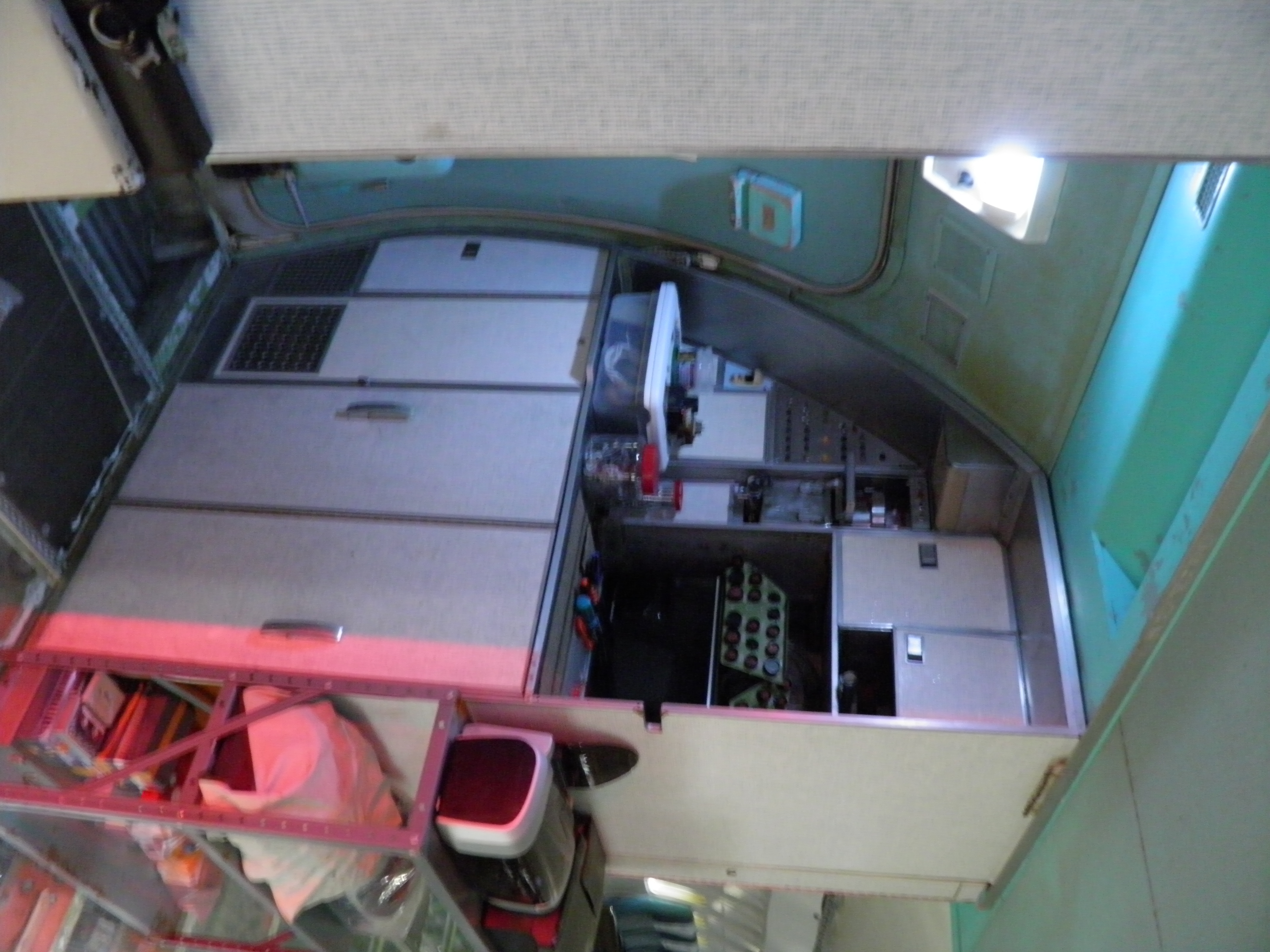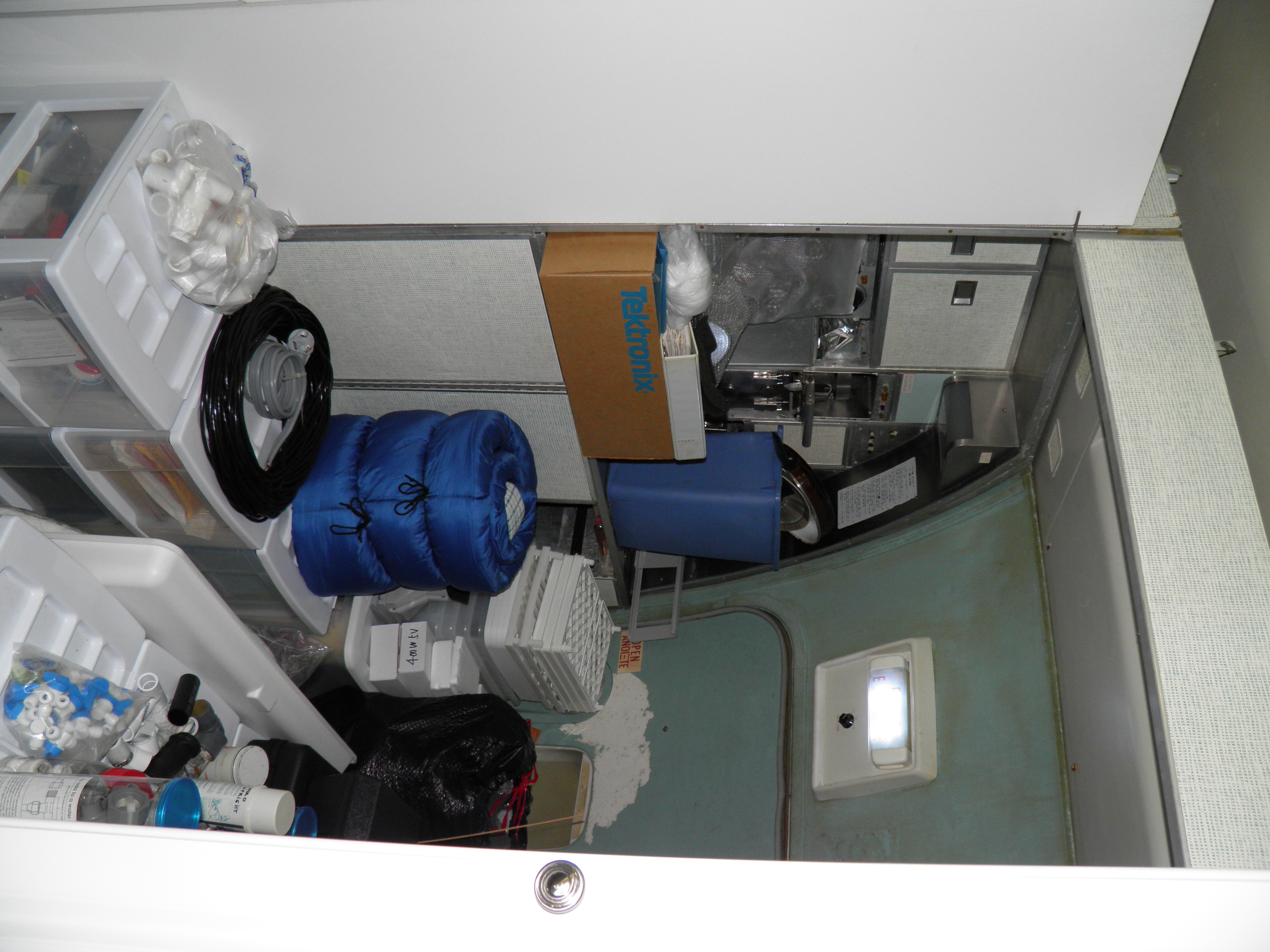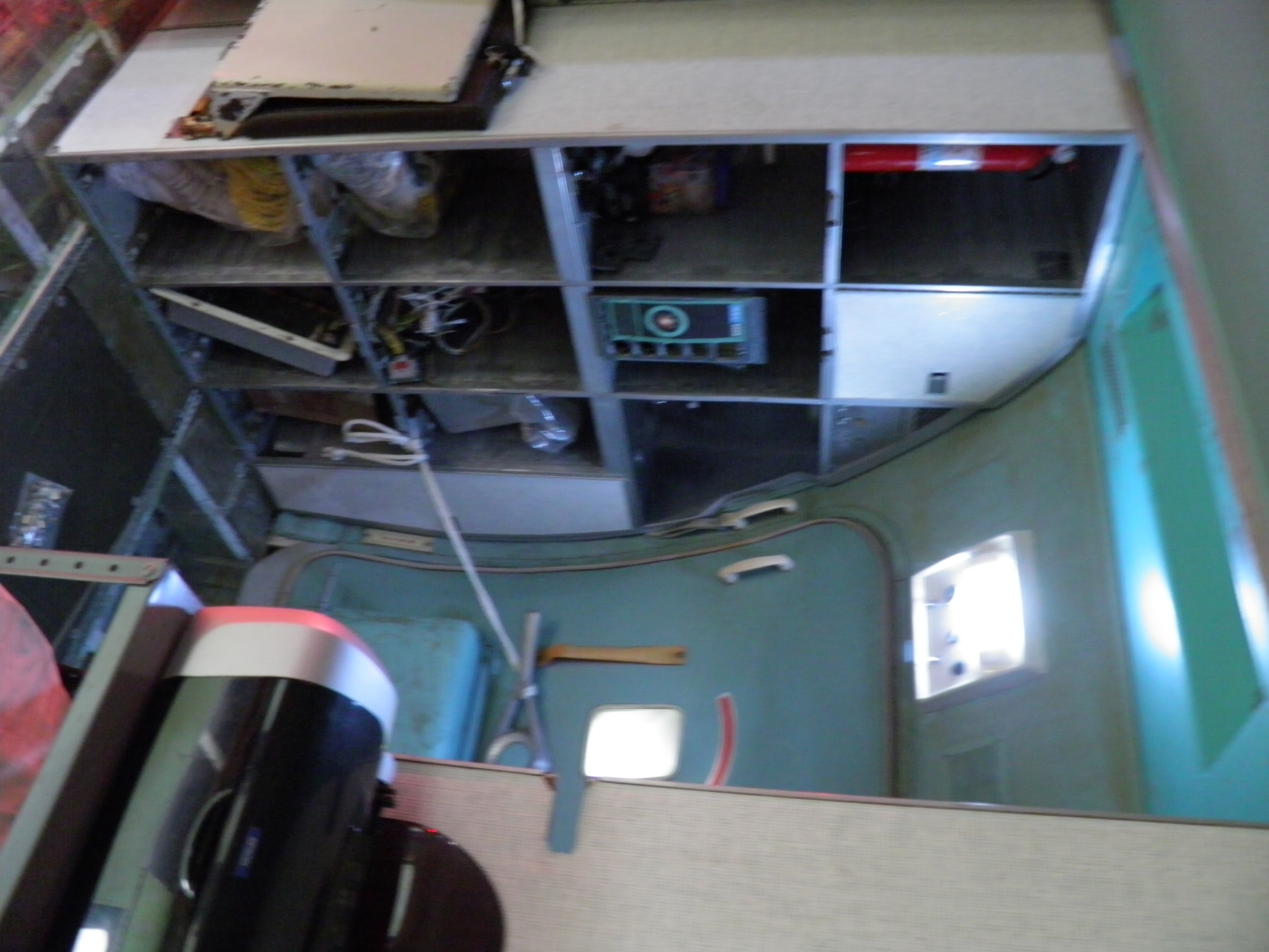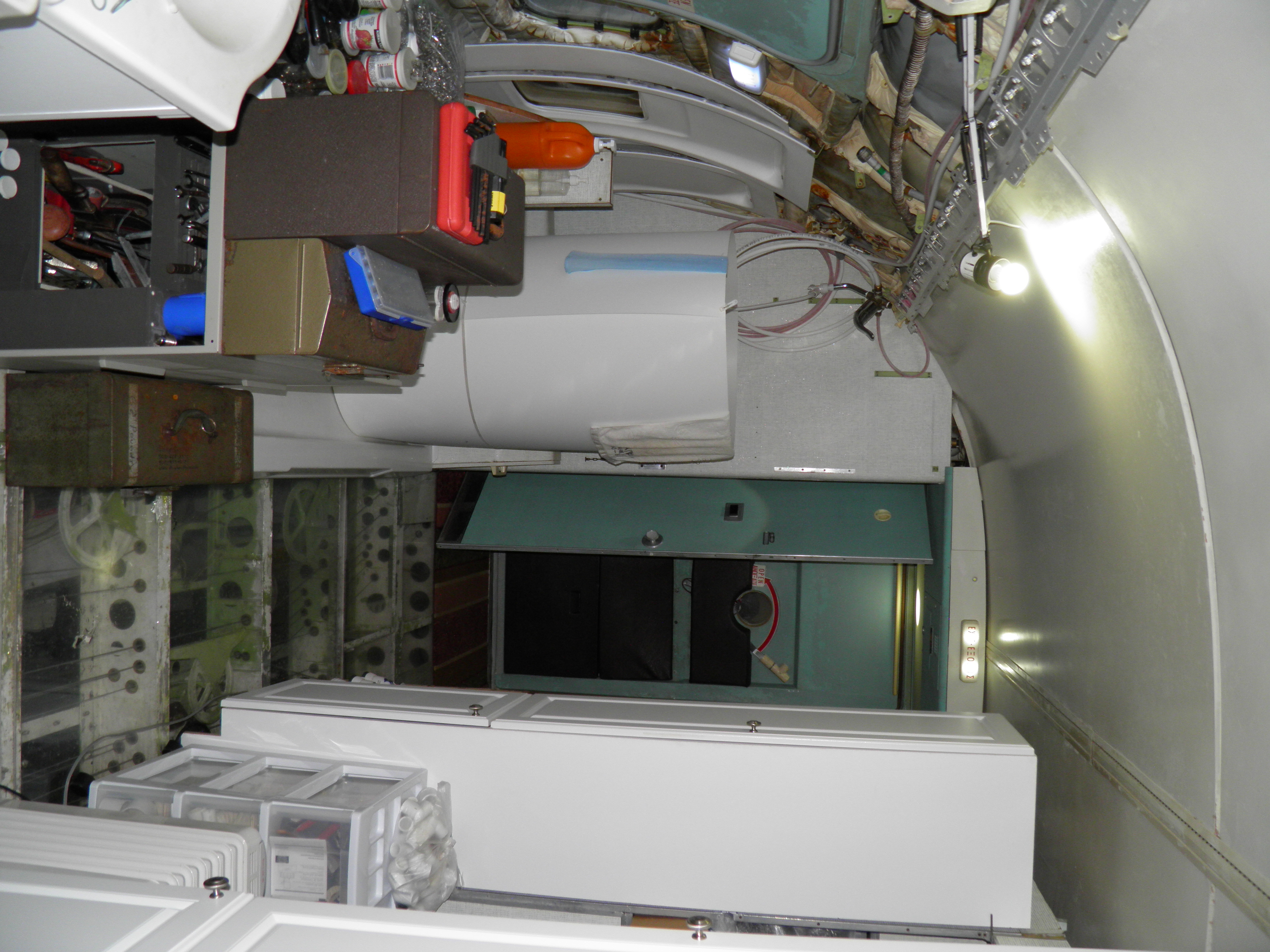 Some new cabin de-cluttering work was accomplished - numerous old personal belongings were discarded and some 727 components were moved to the aft cargo bay, which is now over-packed with material.