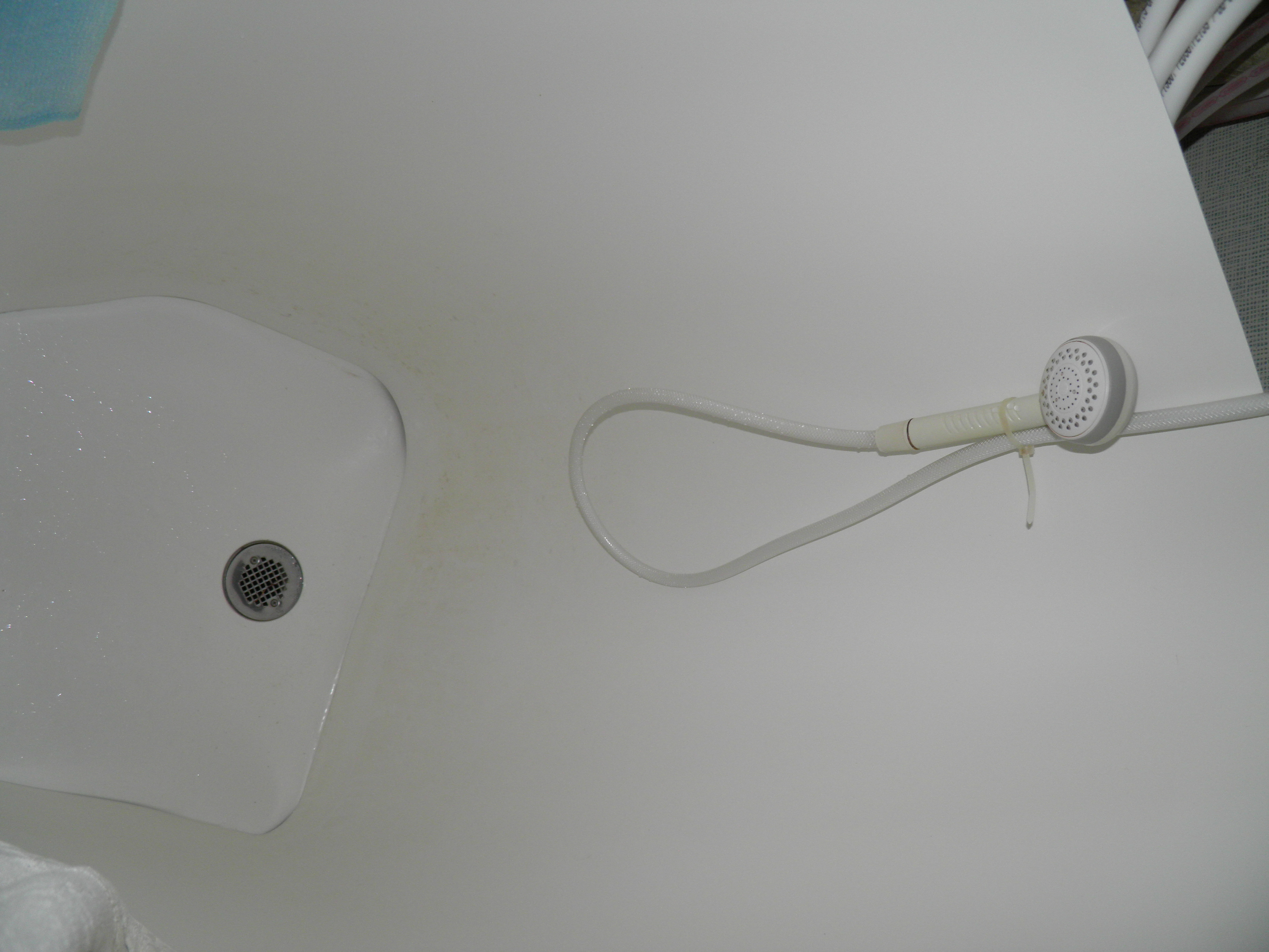 Though it's been sooooo long, shower stall construction still hasn't begun even though the materials are in the forward cabin and construction should be relatively quick and easy.  In large measure because exterior work was my primary focus for the first half of 2015.  But eventually a real shower stall will be built.  It'll be rather large, connecting to the wall of the right aft lavatory and the cabin windows from that wall to the right aft service door.