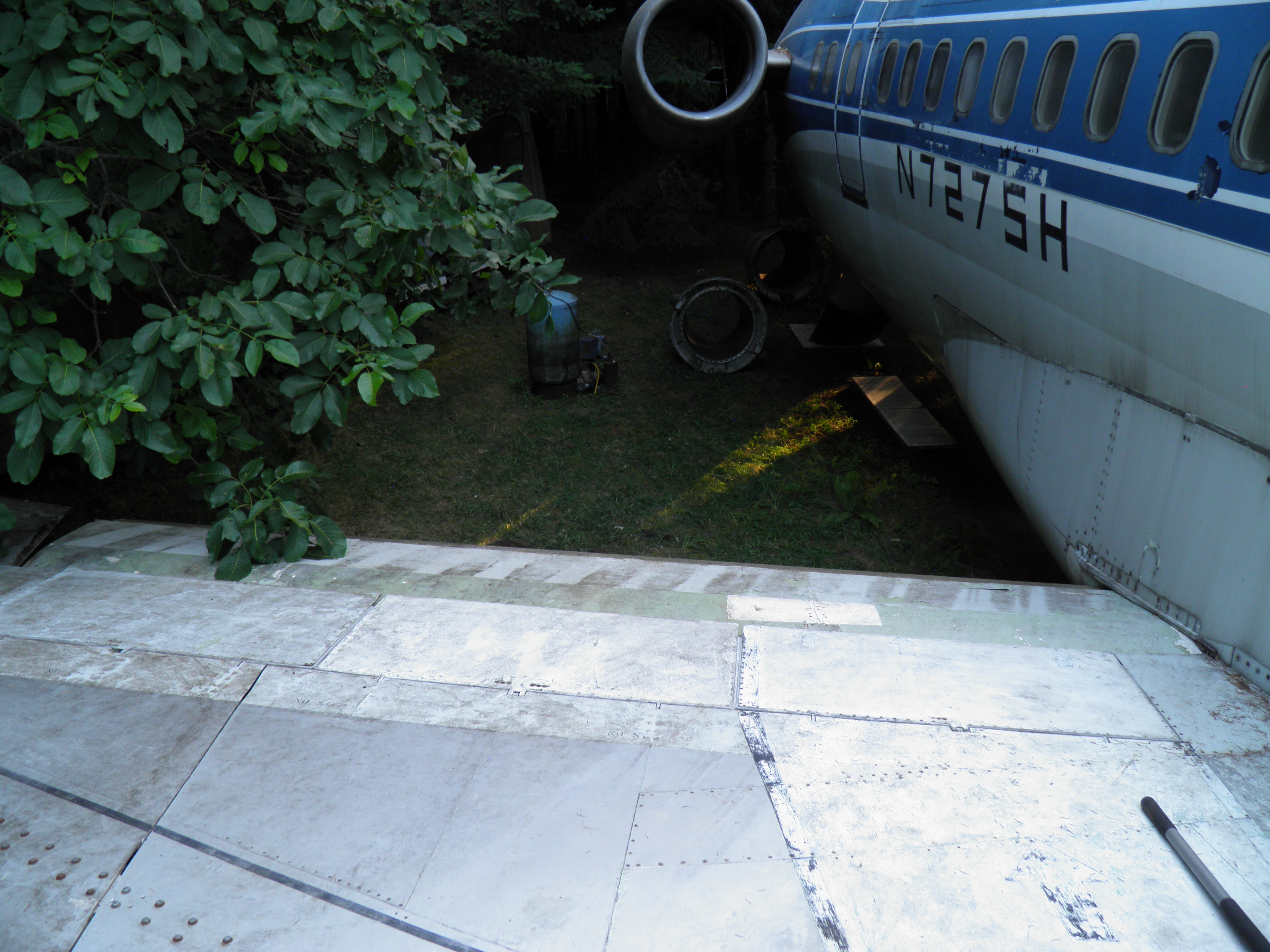 Once all three vans are out of sight of the aircraft, the grounds will look much cleaner and far more appealing.  But further beautification will occur later with completion of the very long delayed permanent landing gear pillar construction work, mounting of the left wing's inboard flaps, restructuring of the water well system (the current external pressure tank will be replaced with a new pressure tank located inside the aircraft, in the aft cargo bay), and further aircraft restoration work.  I'm very eager to complete all this work of course, but they're substantial tasks with minimal funding (because Airplane Home v2.0 has funding priority), so patience is required.  But once complete the grounds should look thoroughly clean and natural, and thus the aircraft itself should look far more elegant and appealing.  If my current pace can be maintained, these tasks might be complete within about two years.  But I can't promise such a schedule of course...