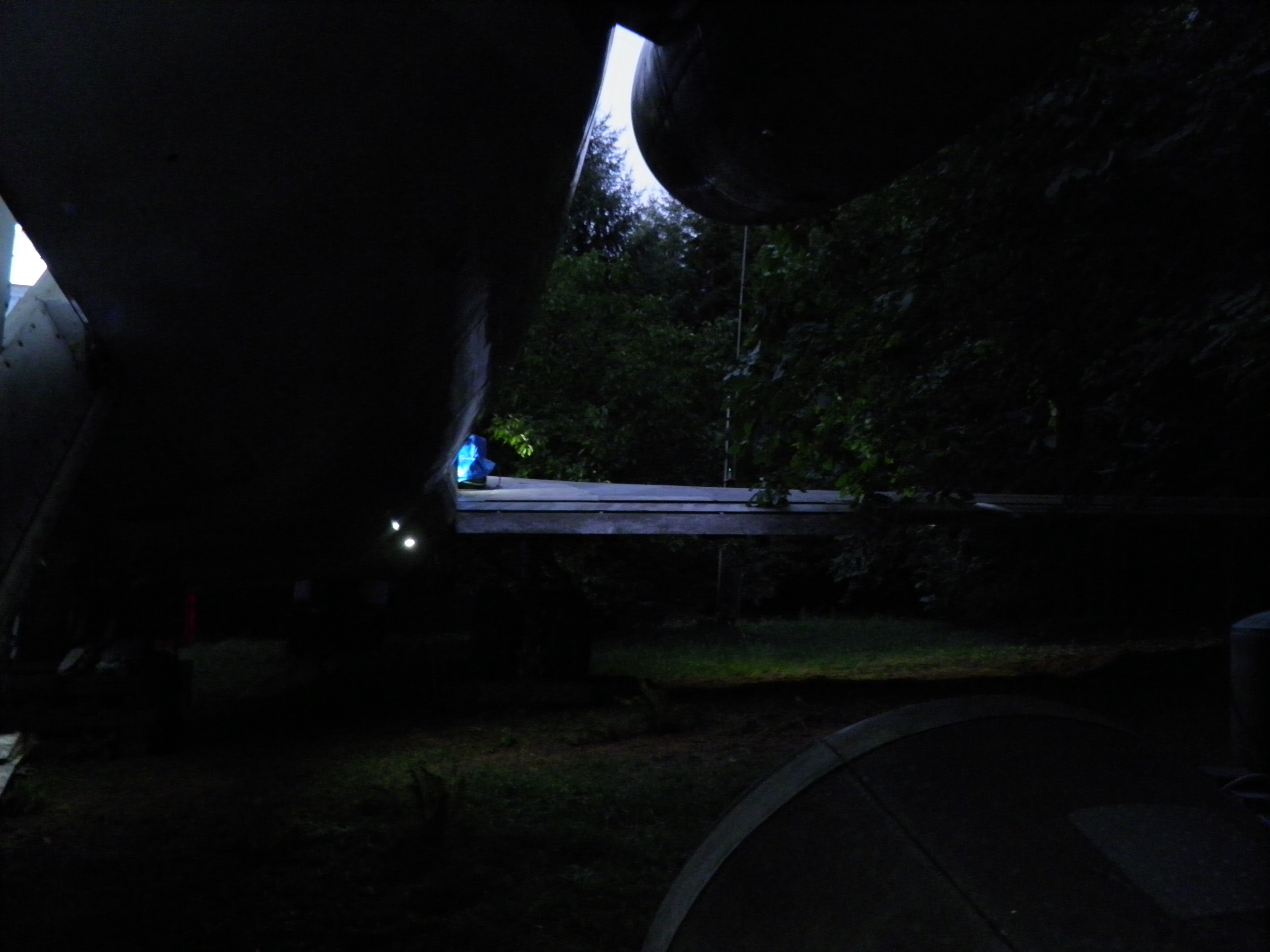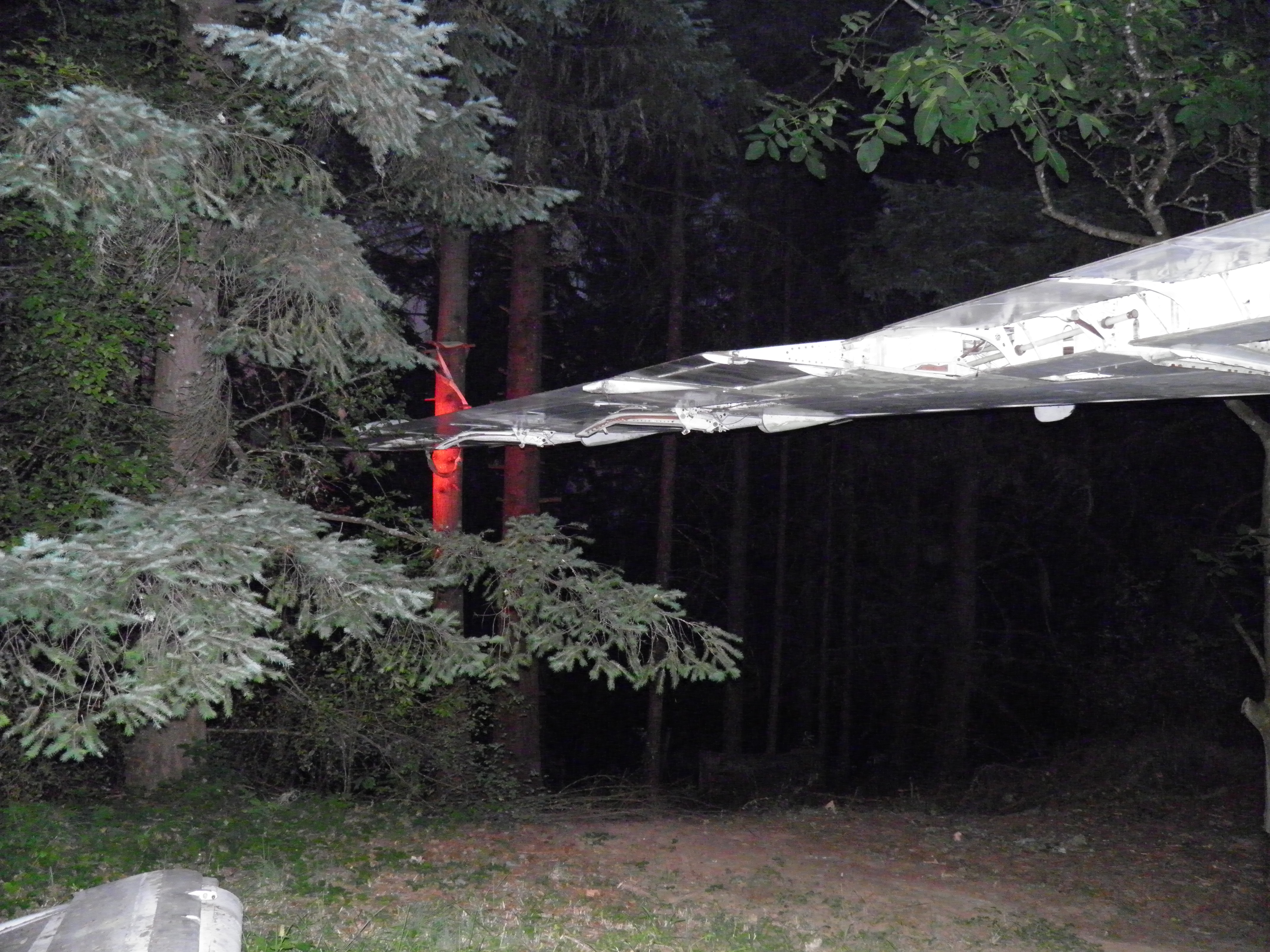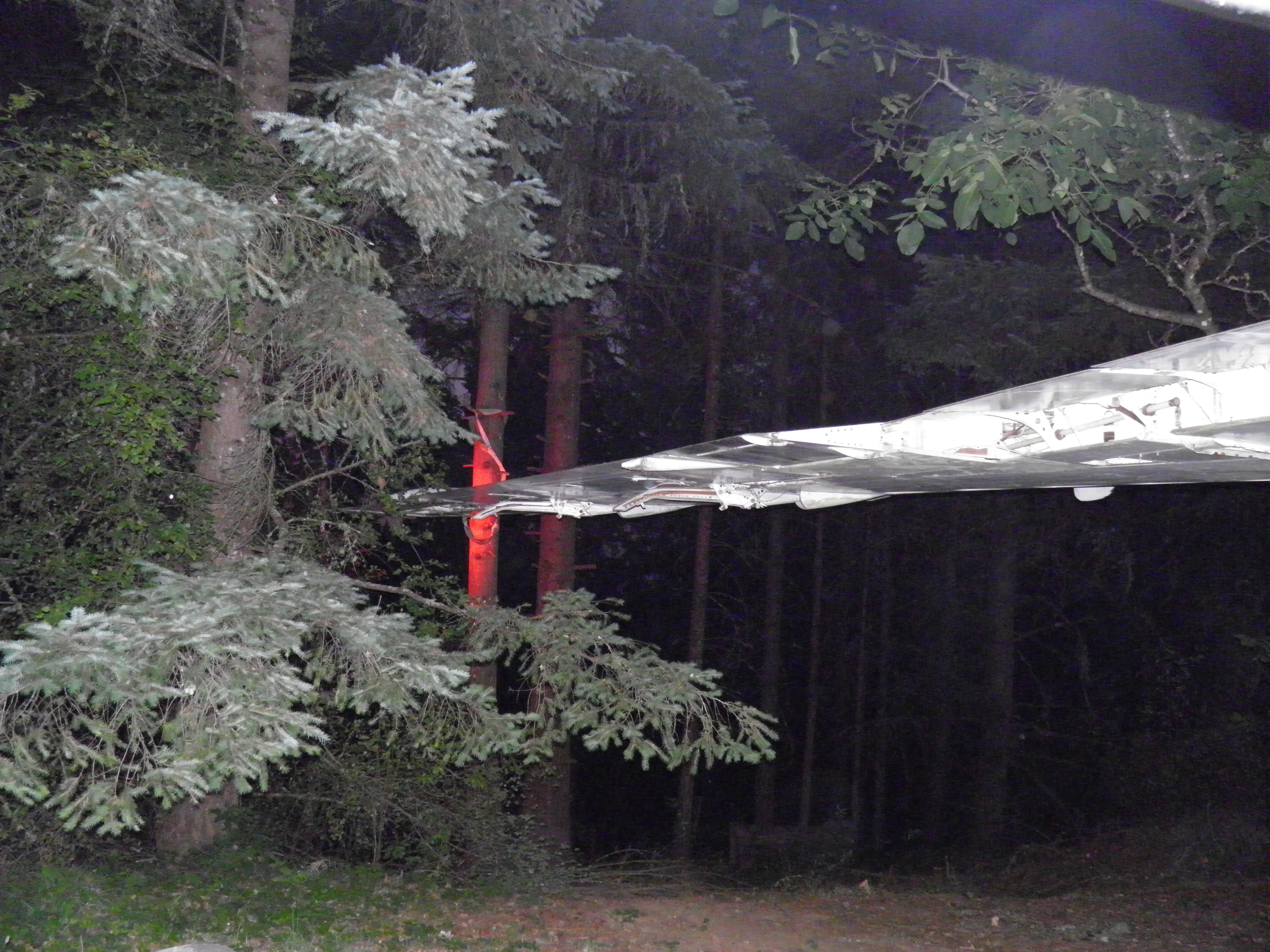 The third van, located behind the right wing, has been cleared of most material which was obsolete or unlikely to ever be utilized and thus is significantly lighter.  I plan to move the entire van to a new location near the west border of my property where it'll be essentially out of sight of the aircraft, immersed in mature Douglas Fir trees.  This will be a big task since, even though significantly lighter now, the van is still massive and thus nontrivial to move.  An old truck trailer will probably be required, and material will likely be cleared from the van in preparation for the move, then material moved back into the van after the move.  (A material swap will likely be involved at that time - personal domestic items will probably be moved into my aircraft, and currently unused aircraft components then moved into the van.) The van will likely permanently remain on whatever wheel structure is utilized in part to provide improved earthquake resistance, but also to facilitate any future repositioning which might be desired.  Although success seems unlikely, I hope to complete this task before winter weather arrives too.