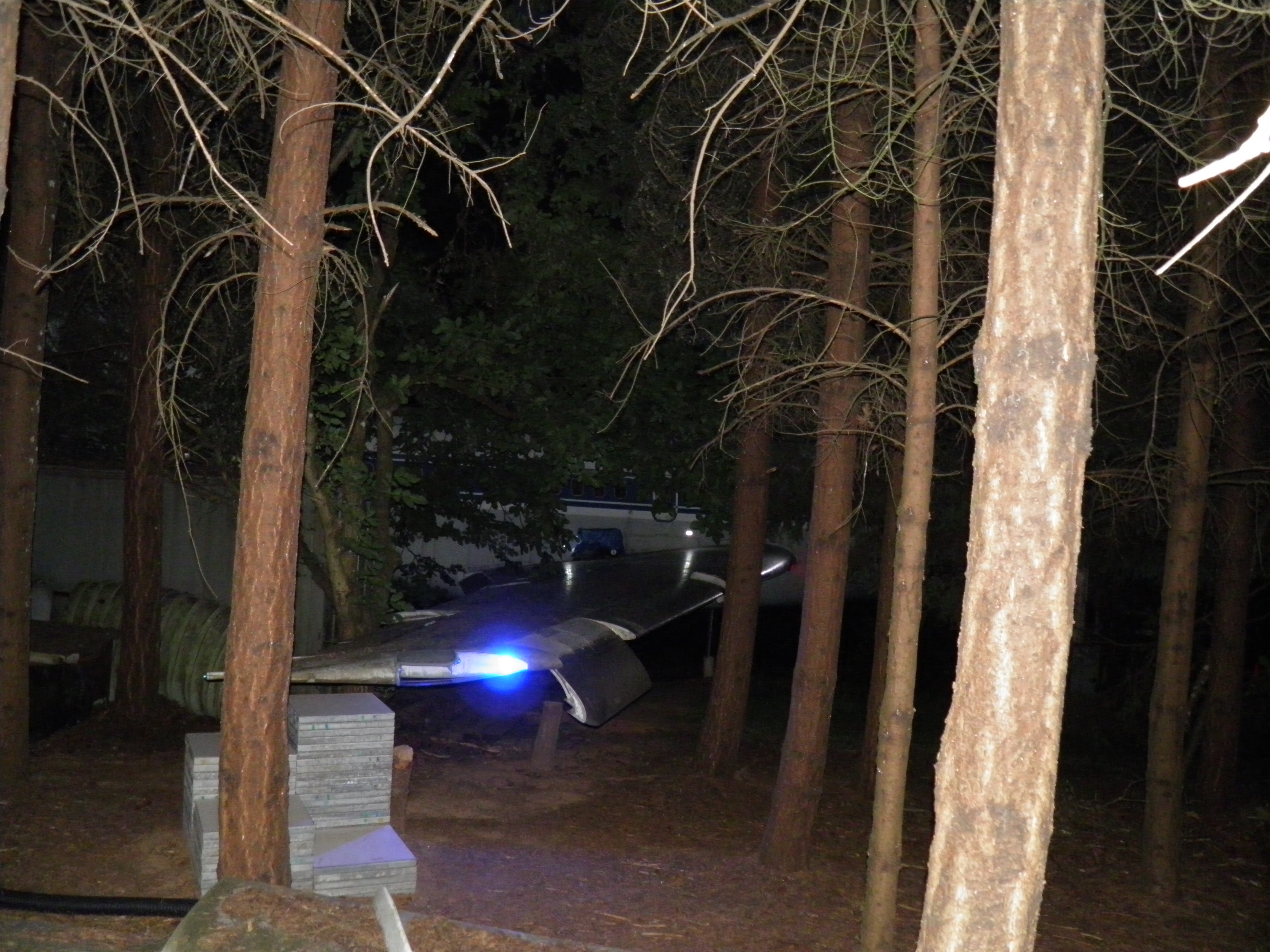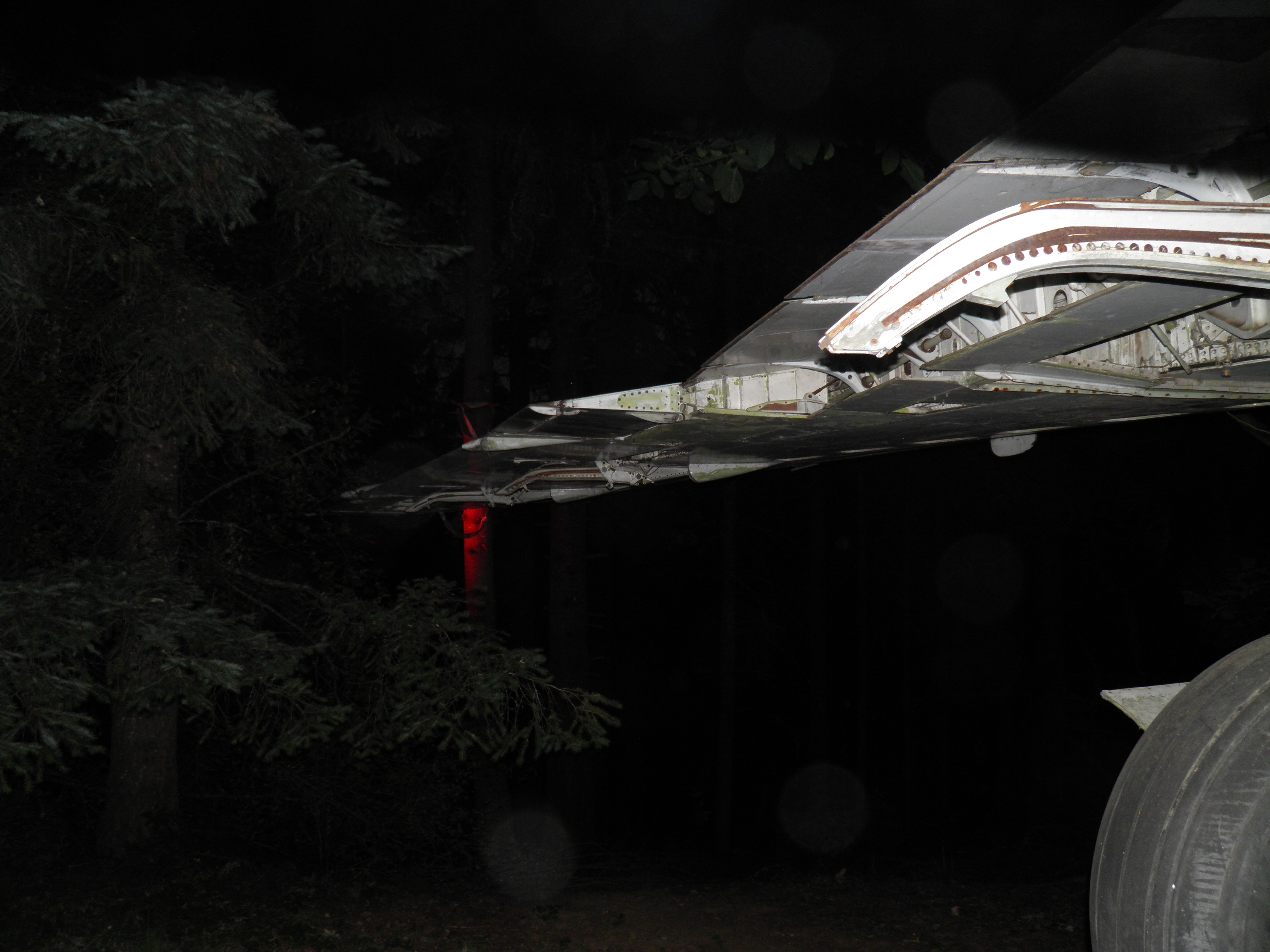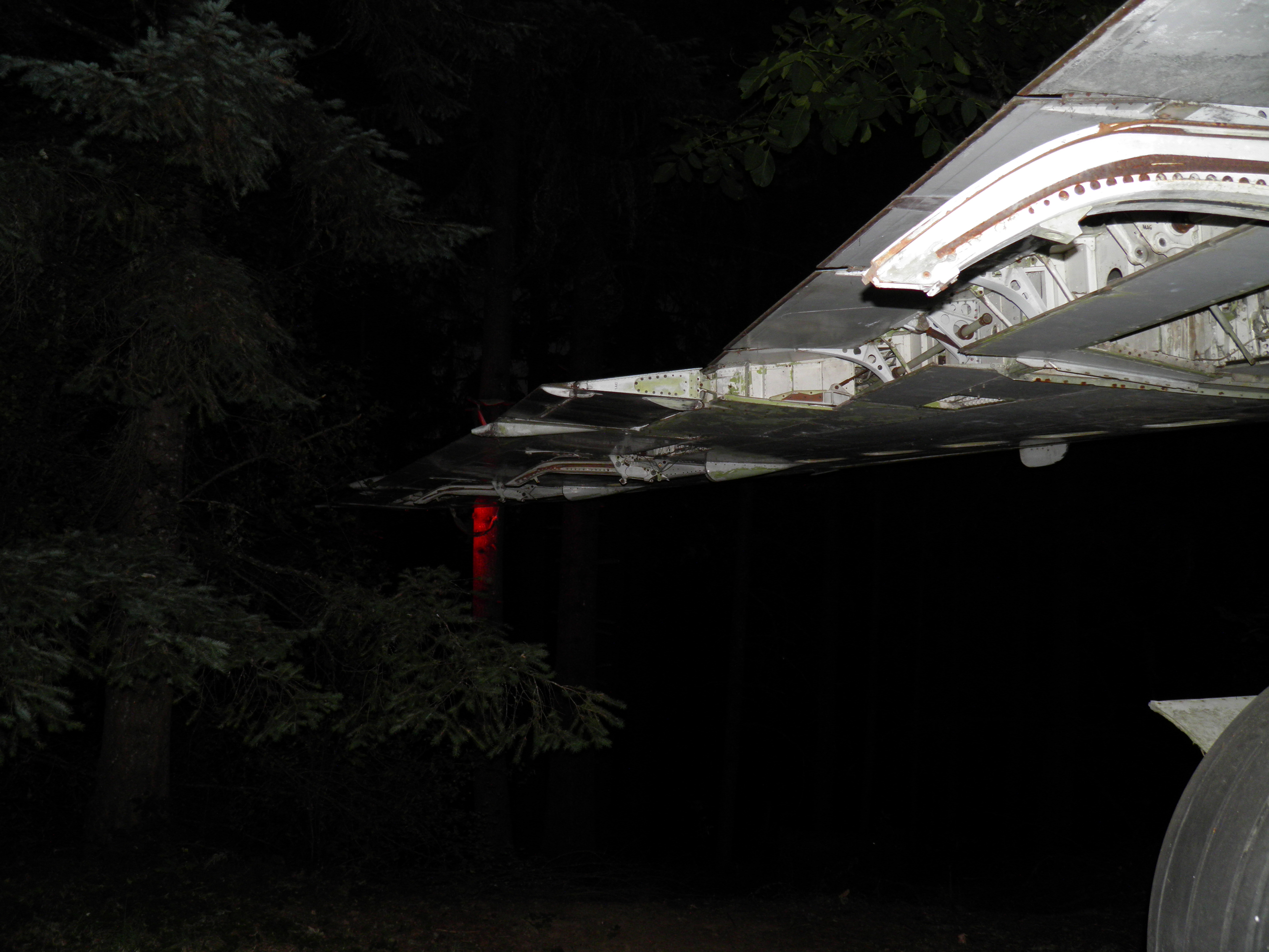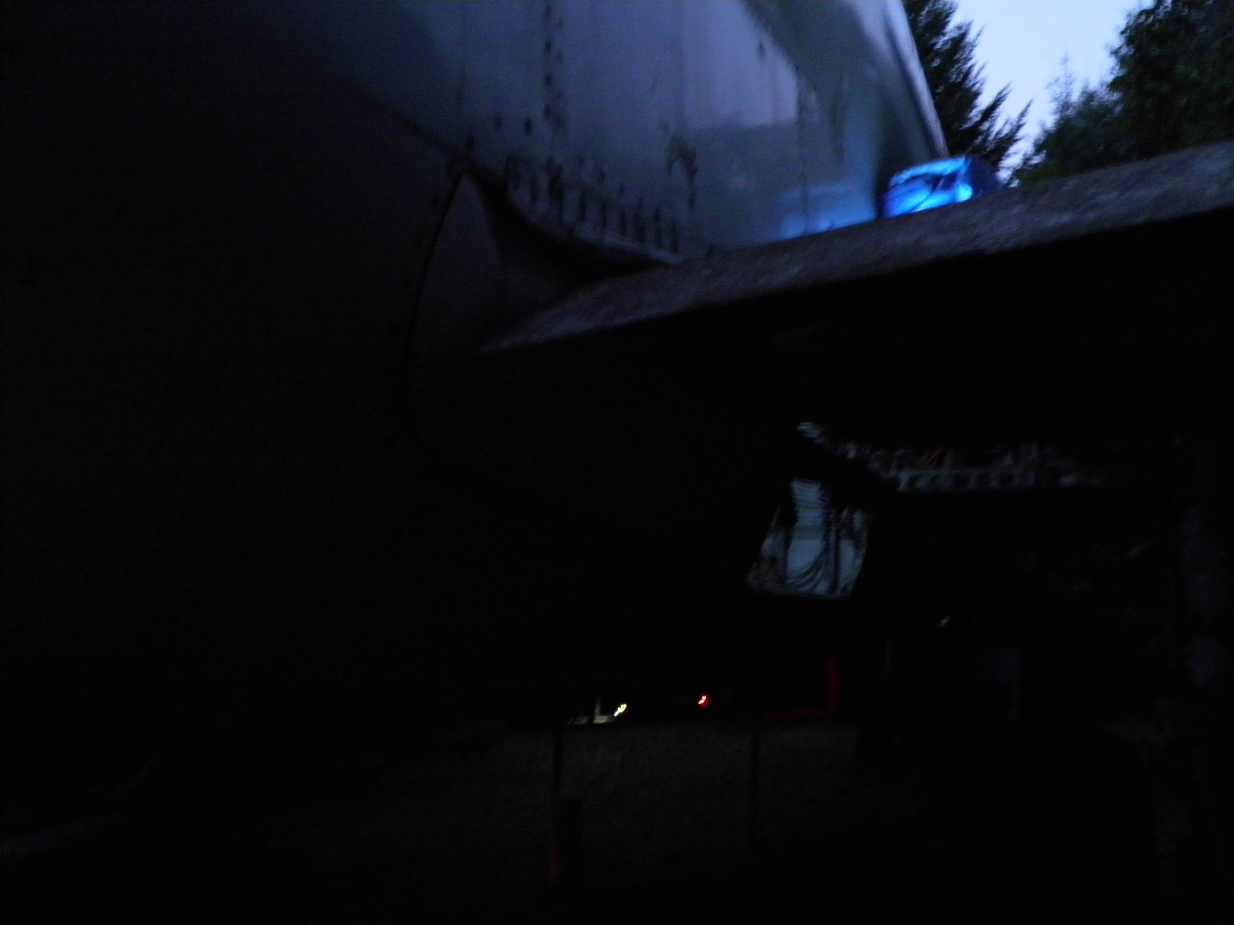 The third van, located behind the right wing, has been cleared of most material which was obsolete or unlikely to ever be utilized and thus is significantly lighter.  I plan to move the entire van to a new location near the west border of my property where it'll be essentially out of sight of the aircraft, immersed in mature Douglas Fir trees.  This will be a big task since, even though significantly lighter now, the van is still massive and thus nontrivial to move.  An old truck trailer will probably be required, and material will likely be cleared from the van in preparation for the move, then material moved back into the van after the move.  (A material swap will likely be involved at that time - personal domestic items will probably be moved into my aircraft, and currently unused aircraft components then moved into the van.) The van will likely permanently remain on whatever wheel structure is utilized in part to provide improved earthquake resistance, but also to facilitate any future repositioning which might be desired.  Although success seems unlikely, I hope to complete this task before winter weather arrives too.