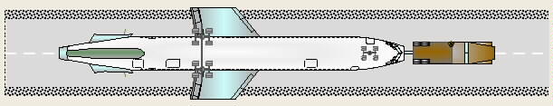 This illustration shows the aircraft, on its moving dollies, on a 25 foot wide road, similar to many sections of Highway 219. Traffic will be unable to pass in either direction, so detour routes will be necessary.